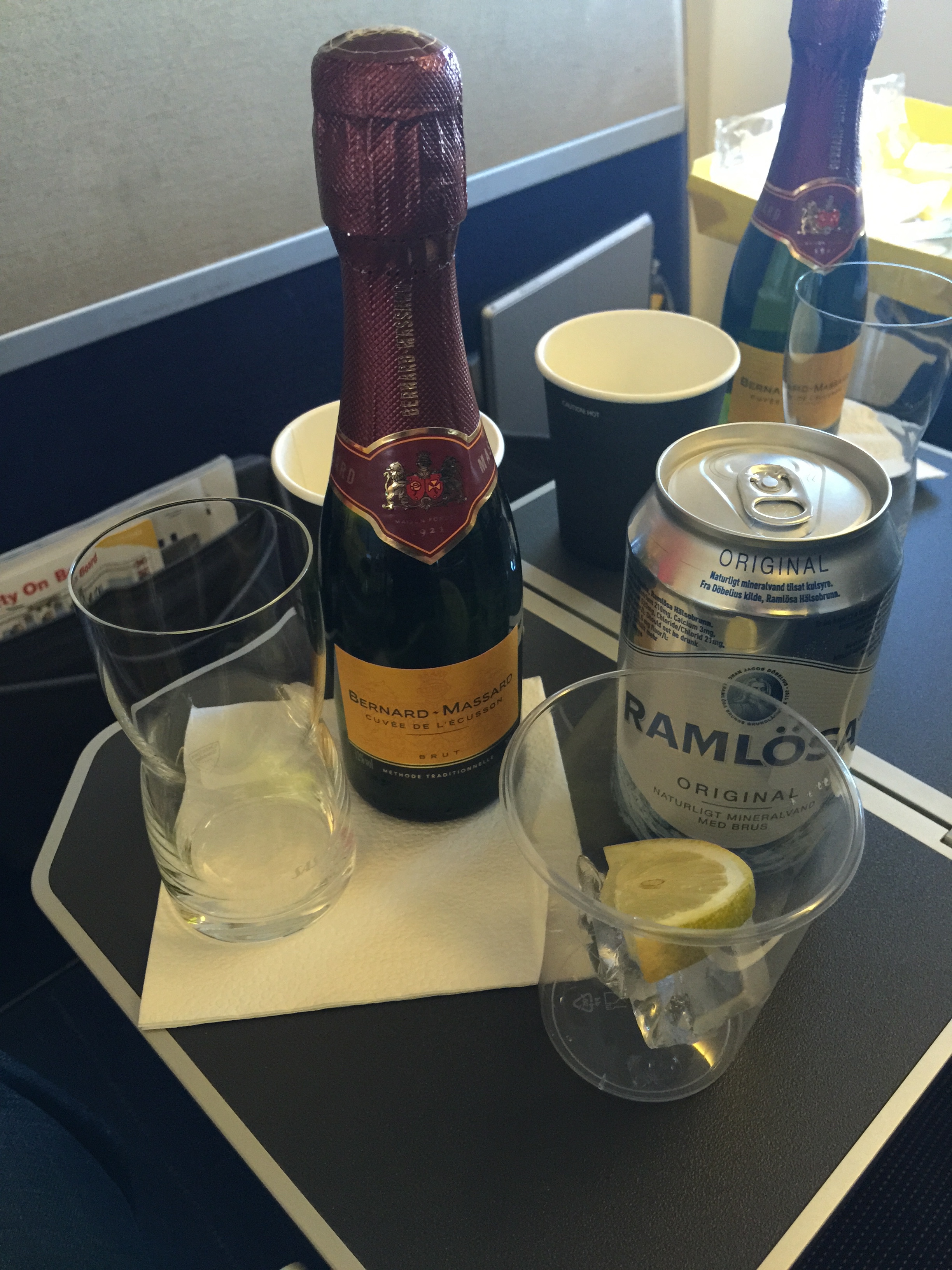 Direkt efter maten så kom dryckesvagnen ut och jag fick frågan vad jag ville ha att dricka. Ville ha vin och då ställde flygvärden fråga om jag ville ha lite mousserande till maten, och det tackar man inte nej till.