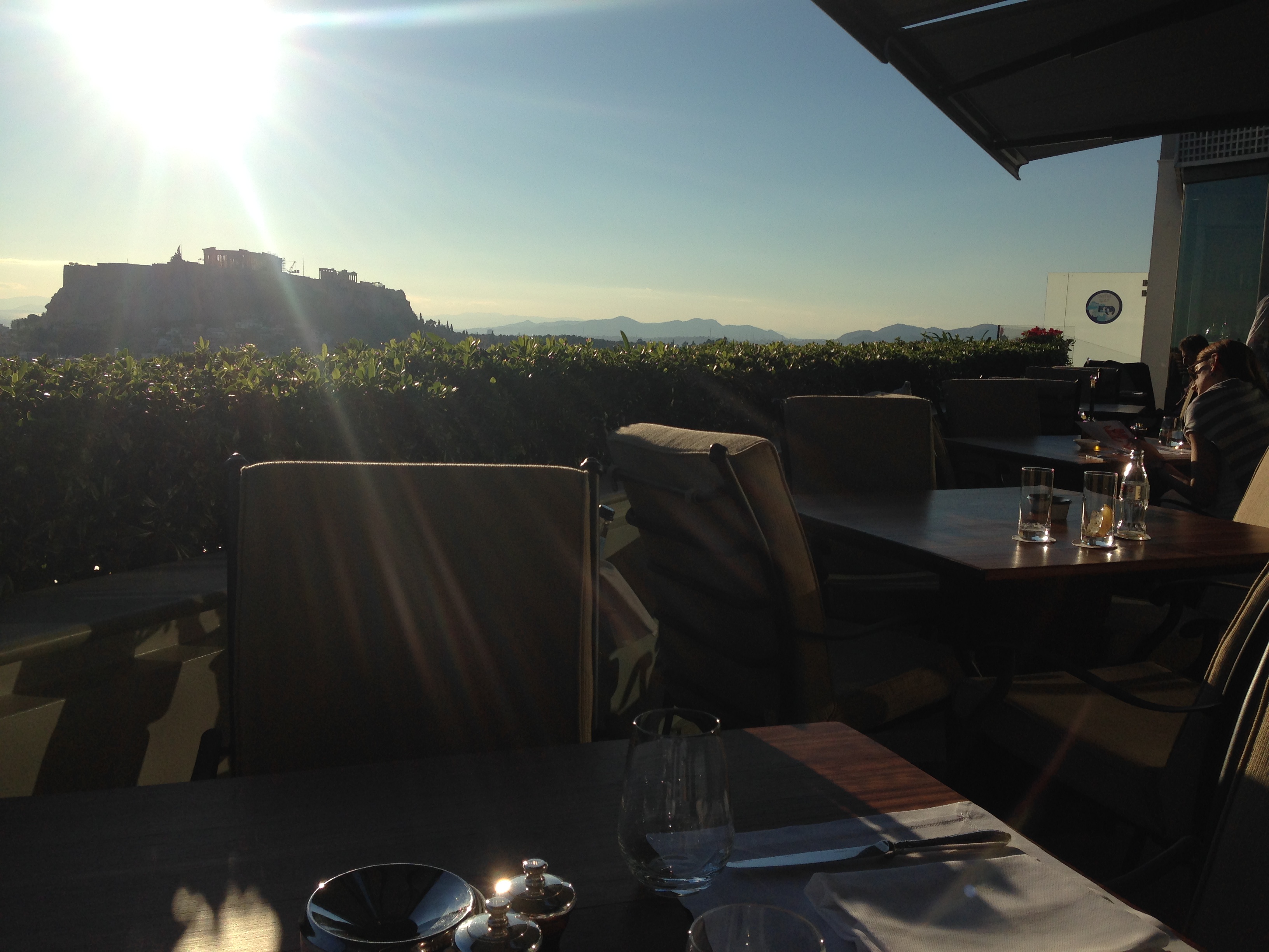 Man sitter med grym utsikt rakt framför Akropolis och visste så gjorde solen och solnedgången sitt när man satt där.