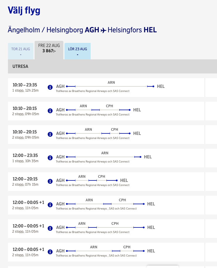 Håller med om att det troligen är ganska mycket O/D-trafik, dvs utan vidare förbindelse i Stockholm. Dessutom är tåget inte ett jättebra alternativ eftersom det blir lokaltåg plus minst ett byte för avresande i flygplatsens upptagningsområde. Så det finns förutsättningar.Om man ser på passagerarstatistiken för Ängelholm verkar underlaget vara bra. År 2019 var antalet passagerare mellan Ängelholm och Stockholm ca 375 000, varav ca 200 000 flög till Bromma och ca 175 000 flög till Arlanda. Det ger ju ett snitt om över 1 000 passagerare per dag. I fjol hade antalet passagerare sjunkit till knappt 200 000, varav 115 000 flög till Bromma och resten till Arlanda. Att en större andel av passagerarna som flög från Ängelholm till Stockholm valde att flyga till Bromma tyder på att det är mycket lokalt resande till/från Stockholm.