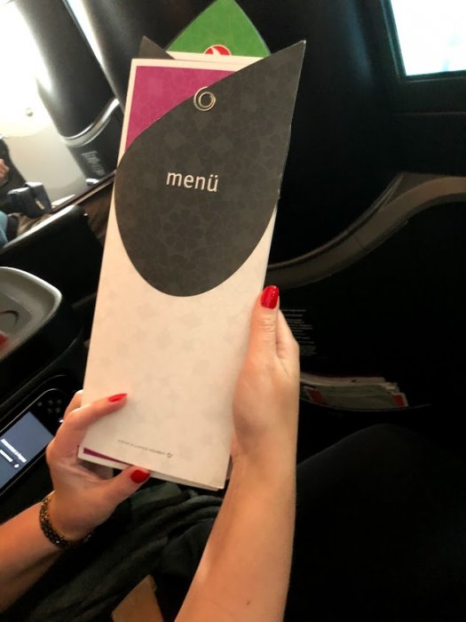 Väl på planet erbjuds vi 3 olika välkomstdrinkar. Hallon, Lemon och något mer. Vi tog Hallon och Lemon och båda var utsökta. Därefter gick "Kocken" runt och delade ut frukost + middagsmenyer.