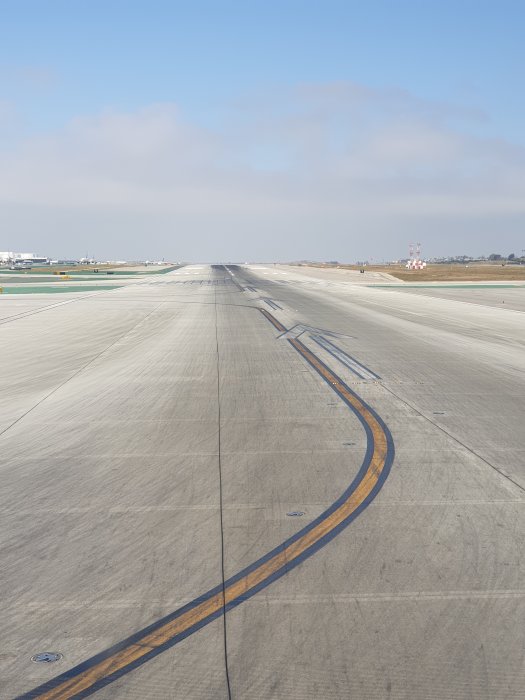 Kändes som vi taxade runt halva LA men till slut startar vi och sätter full fart västerut...