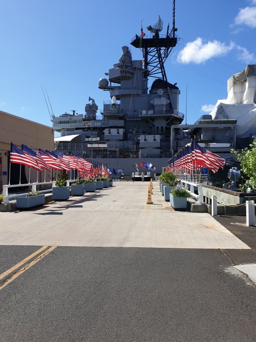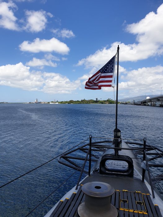 Jag fixade direkt biljett till Arizona Memorial och den film som visas om Pearl Harbor, fick första turen för dagen 07:30. Kan verkligen rekommendera detta, väldigt bra och informativ film. När man går ut så är det bäst om ni sitter långt nere till höger (sett uppifrån) för att komma ut snabbt till båten (för att kunna ta en plats vid relingen) som sedan tar en ut mot USS Missouri och Arizona Memorial. Tyvärr restaureras memorial nu till hösten 2019 så man fick inte gå "ombord" där utan vi passerade bara förbi med båten.