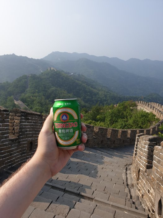Vi åkte upp vid torn 6, jag promenerade sedan bort till torn 14 där linbaban kommer upp. På vägen köpte jag en öl för 80RMB, sjukt god öl men aningen överprisad.