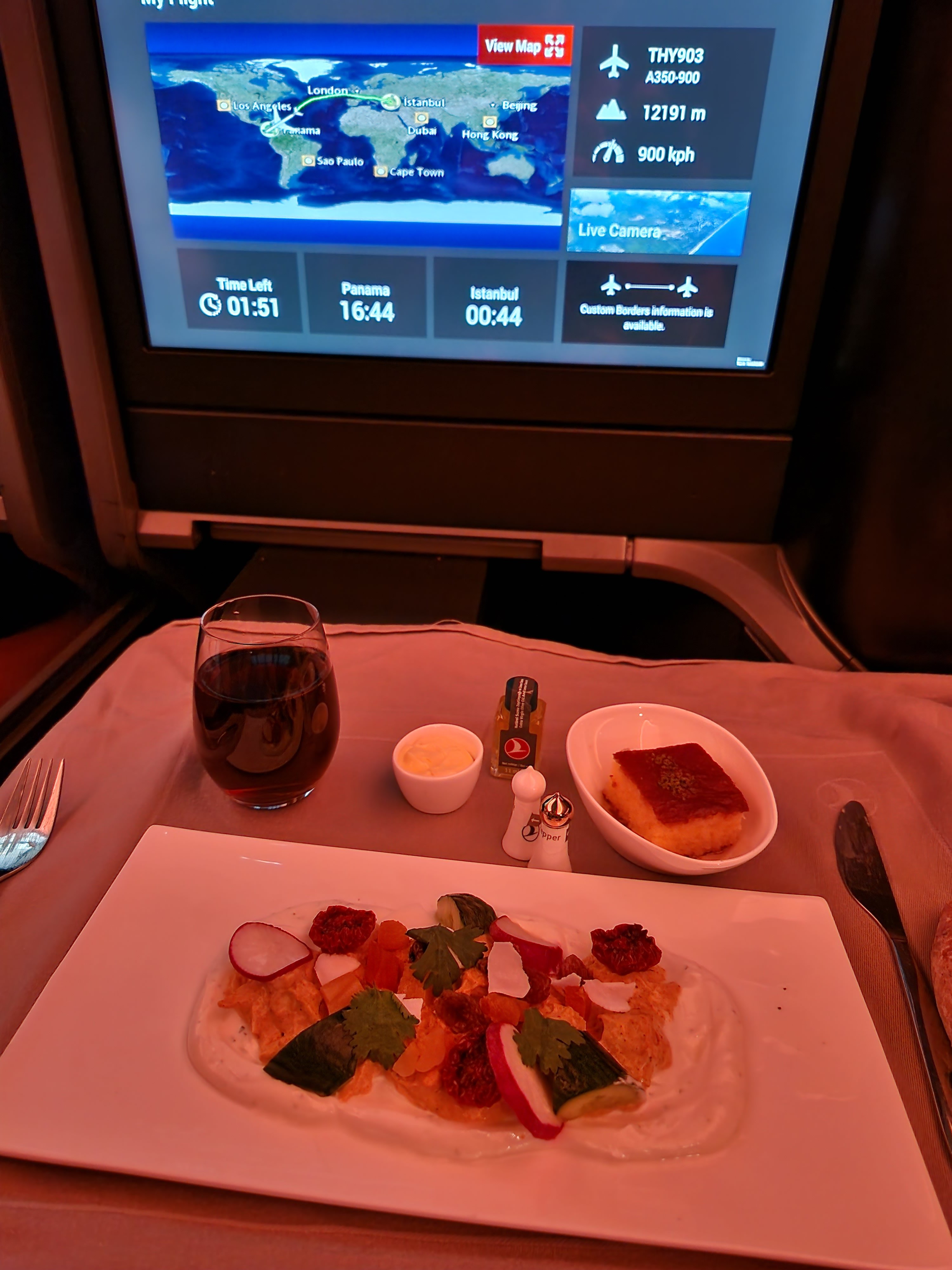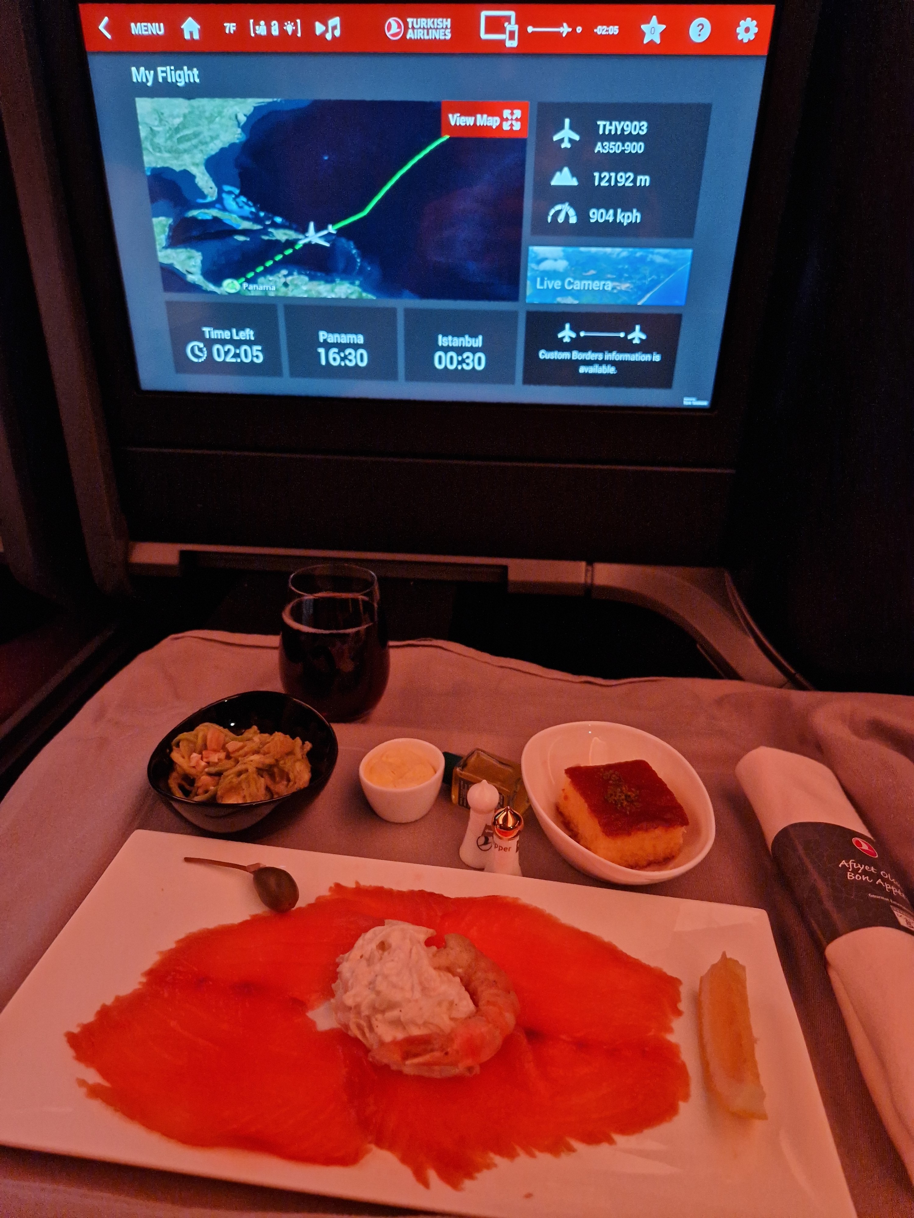 Landat i Istanbul nu. Riktigt bra flygning. Startade måltiden med Raki och en Efes. Riktigt gott. Dock så var ölen inte speciellt kall. Har de inte igång kylskåpet på planet medan de städar och tankar planet?