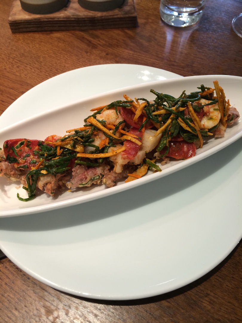 De två förrätterna Trishna Seafood Salad och Hariyali Bream var sensationellt goda, huvudrätterna lite mer beskedliga och efterrätten, som vanligt på indiska krogar, trist.
