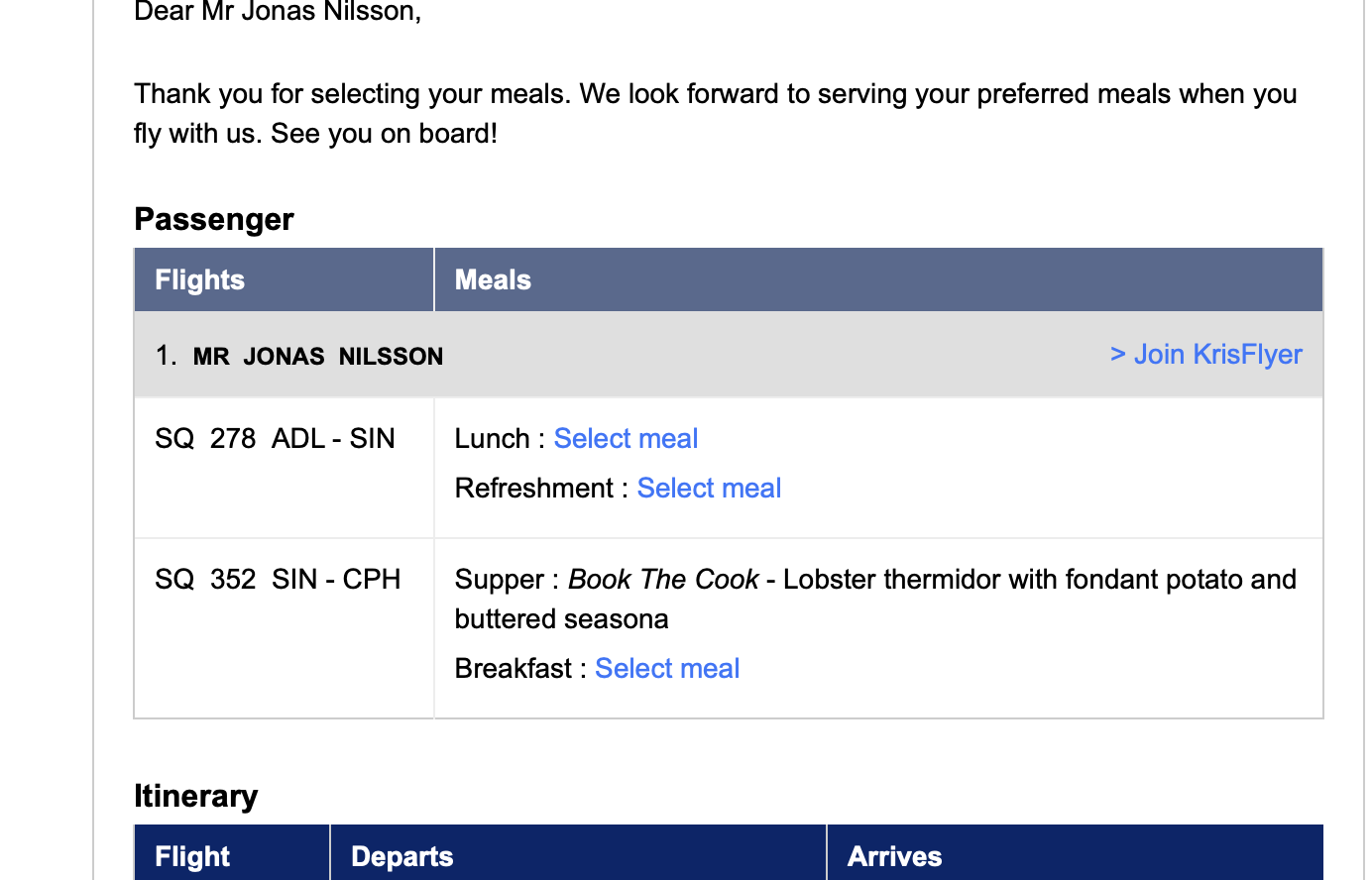 Från cph gick inte i februari 2023, sin-cph gick dock.Någon som har flugit Business CPH-SIN på senaste och kunnat boka Book the Cook?