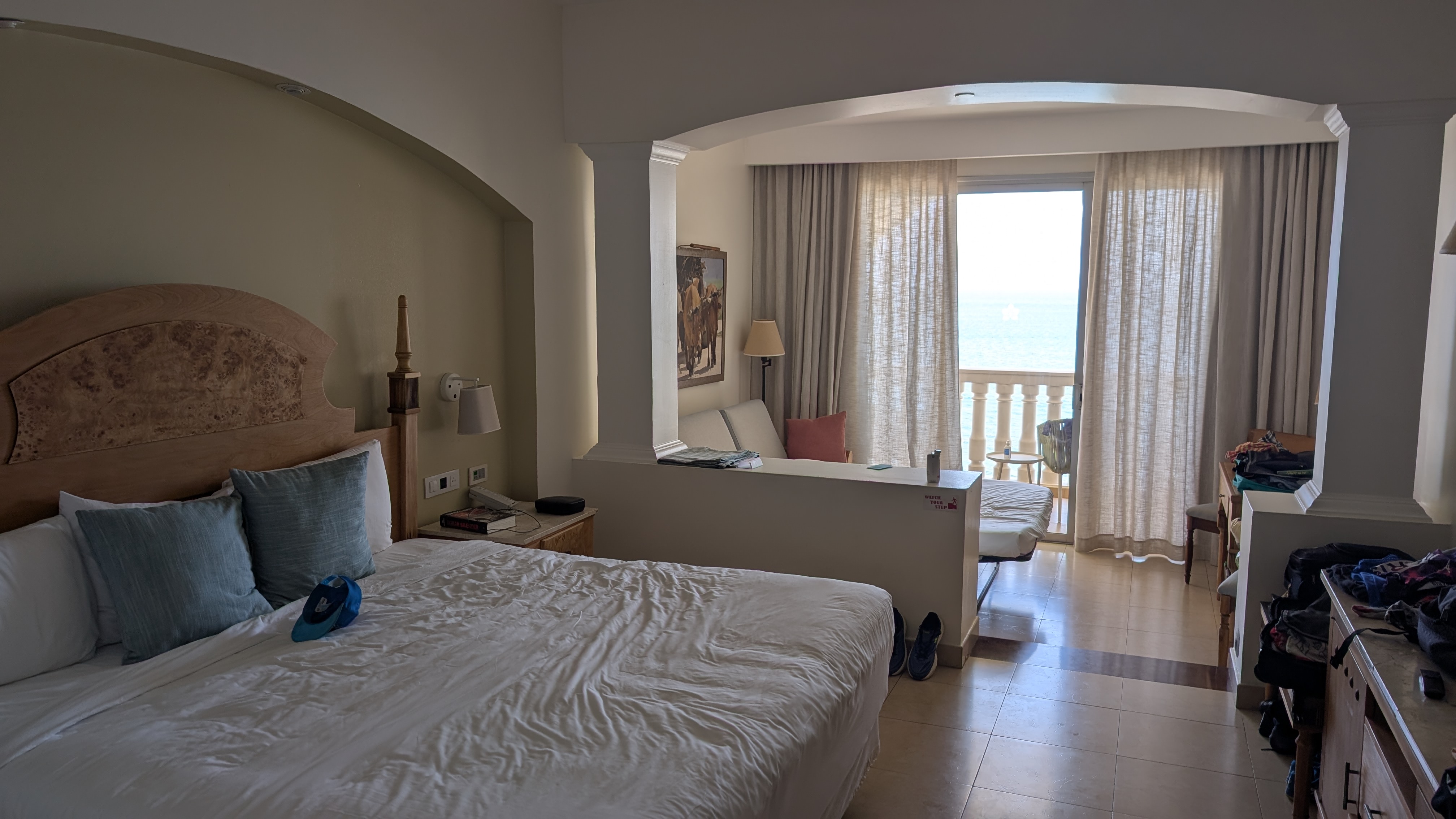 Vi testade Iberostar för första gången förra sommaren i Herceg Novi, Montenegro. Ingen superlyx, men passar fint när man reser med kids. Då, likt för denna bokning, är det all inclusive även för poängbokning för två vuxna och ett barn. Ytterligare personer får man betala för. Just här på Rosehall Suites var det en hutlös avgift för ett extra barn typ +150USD/natt, men that's life. Vid incheckning verkar det som att det gick upp för dem att det fanns ett IHG diamond i bokningen. Plötsligt skramlades det fram ett rum med ocean view högst upp. Avgiften för 2nd child trollades också bord. Sweet!
