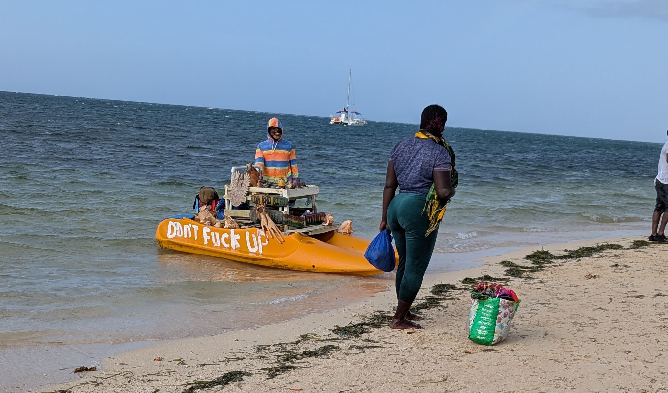 Mat på stranden för sitt dagliga fix Jerk Chicken