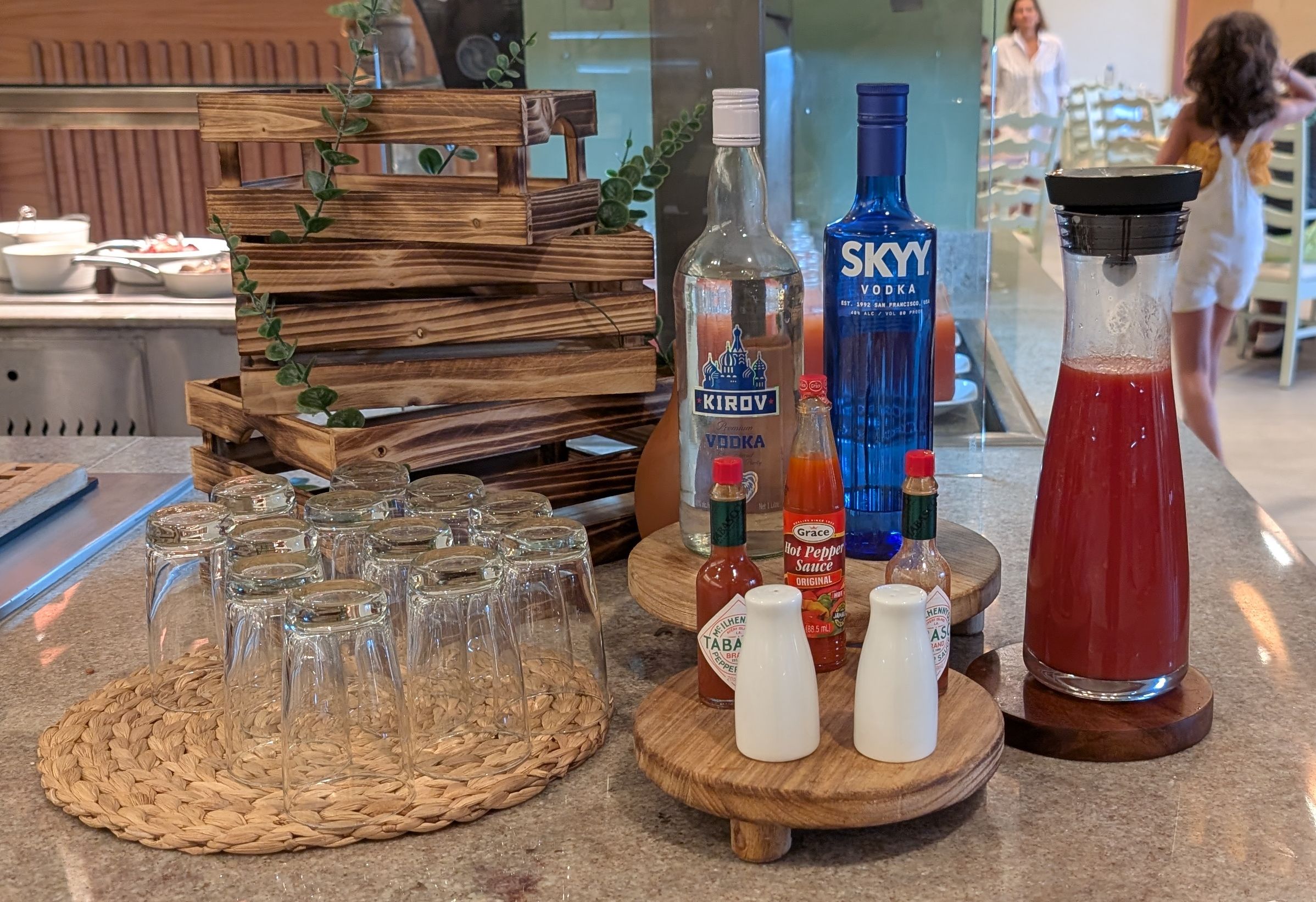 Om mimosan inte biter finns kit för Bloody Mary på frukostbuffén