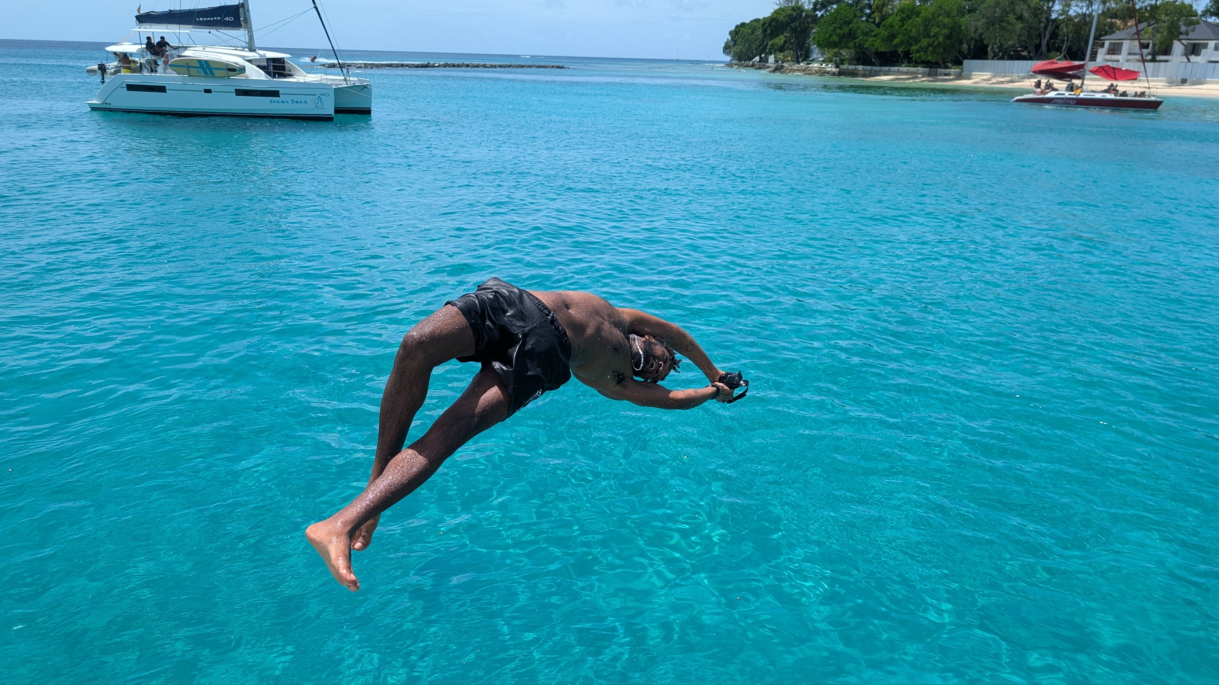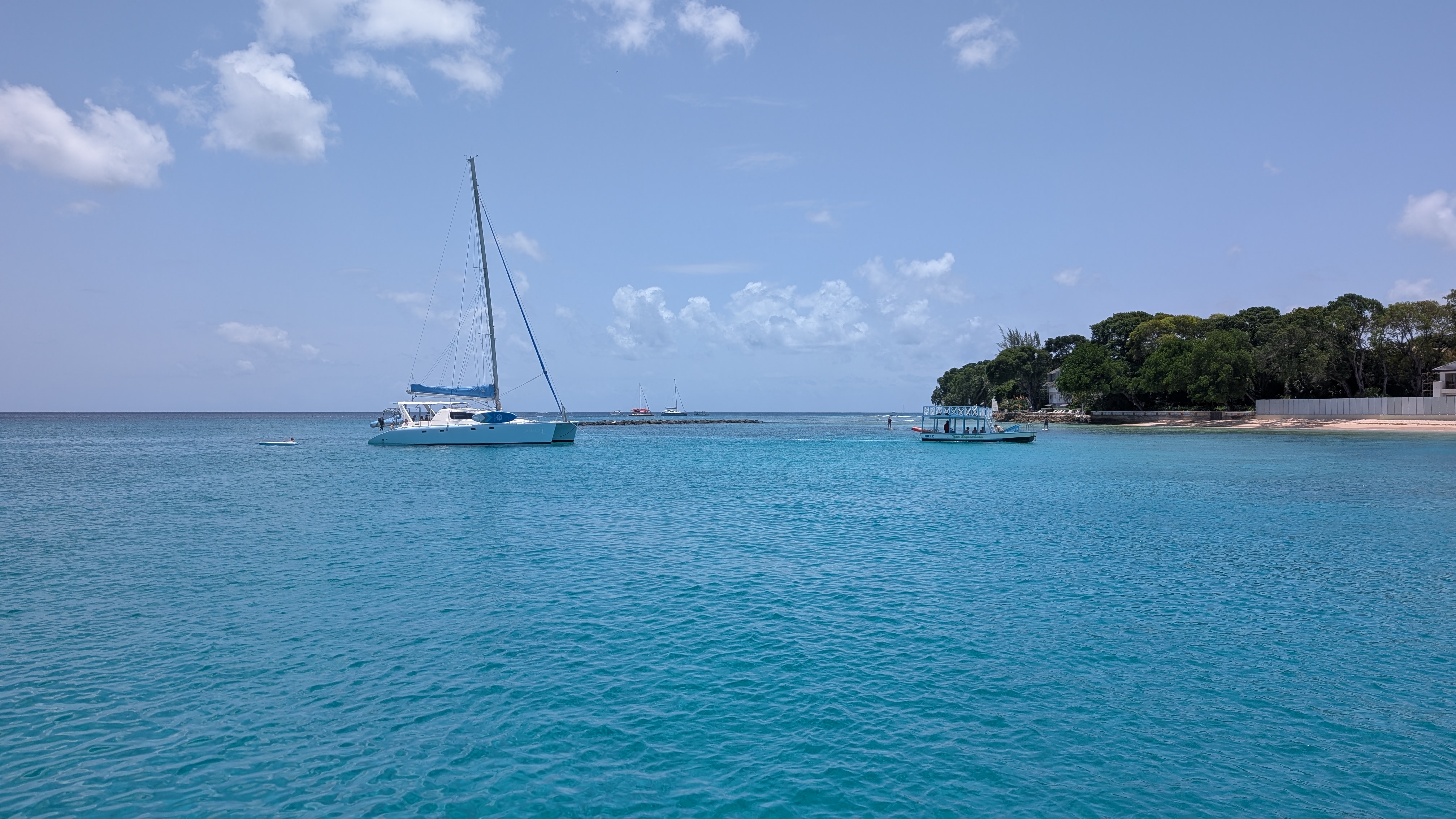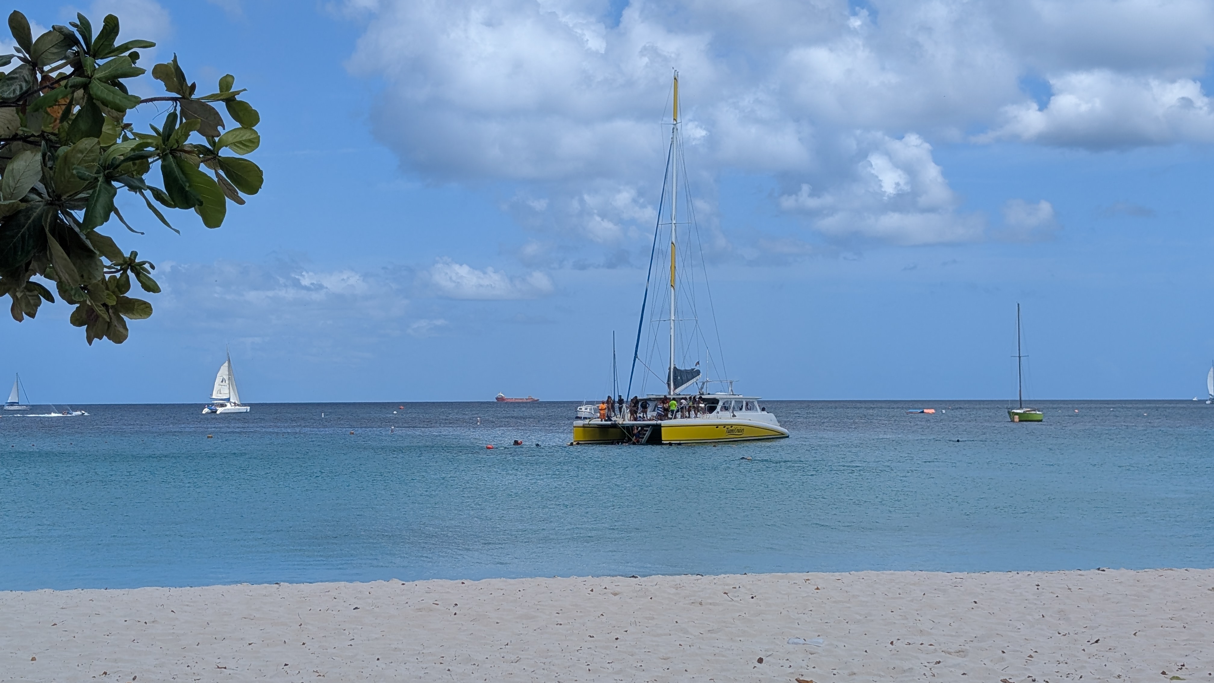 En av utflykterna vi gjorde var en katamarantur för snorkling och bad. Alltid trevligt att komma ut till sjös. Det finns havsskjöldpaddor i krokarna, så det var en av höjdpunkterna. En nyfiken sköldpadda kom simmande mot oss på få meters avstånd. Kul upplevelse. Förutom snorkling seglade vi upp längs västkusten med några badstopp I turkost vatten på vägen. Underbart!
