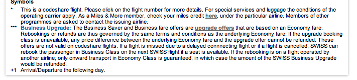 P-klasse hos LX er ingen oppgradering, men helt enkelt den billigste av biz-billettene. Det den lille teksten sier er at om man pga kansellering blir ombooket kan man på LX regne medbiz, på andre selskaper eco, i hvilket fall tillegget fra eco-prisen refunderes. Jeg ser ikke problemet.