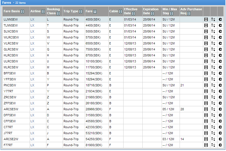 Y77RT LX Y Round-Trip 21934(SEK) E -- / 12M