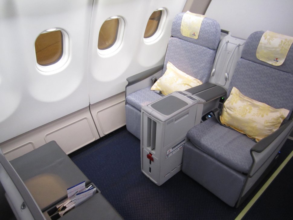 I första rummet ombord på denna Airbus 330-200 var 10 av 18 platser tagna och i andra endast 2.
