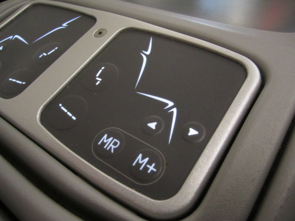 Det fanns även en mugghållare under centerarmstödet där även knappen för skiljeväggen och fjärrkontrollen samt eluttaget satt. Bordet som fälldes ut ur mittkonsolen var robust och större än vad jag vill minnas andra C-produkter jag flugit varit.