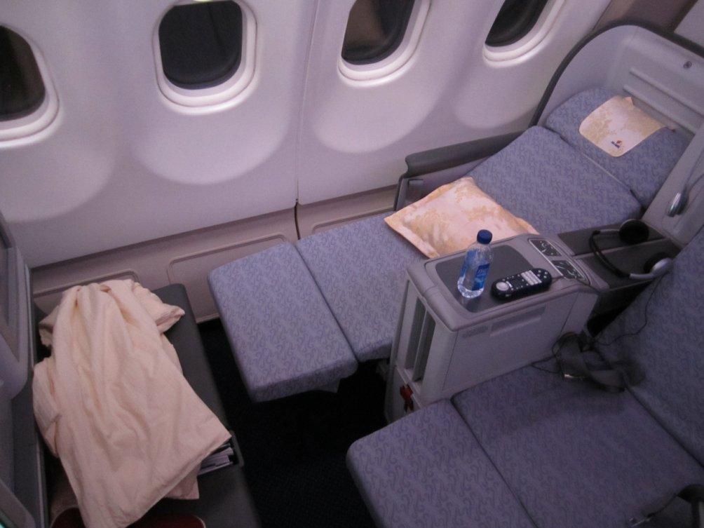 Att få en nödutgångplats var absolut inga problem, de är nämligen blockade tills dess att incheckningen på flygplatsen öppnar och eftersom vi var framme först fanns det självklart tillgång. Det enda som skulle kunna hindra det var ifall några Air China Platinumkorthållare hade förbokat de blockade stolarna, vilket de tydligen kan, men de inte hade.