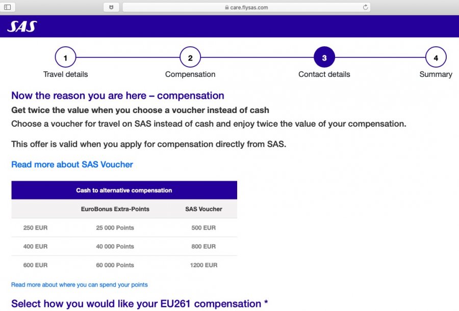 Tack vare att SAS har avbokat en hel del av mina flygresor nu i Corona-tider så har jag möjlighet att få ut EU261-ersättningen i SAS-värdecheckar. Det samlade värdet motsvarar en interkontintental flygresa i business. Problemet är bara att på deras hemsida kan man bara använda två värdecheckar. Jag behöver använda fem värdecheckar.