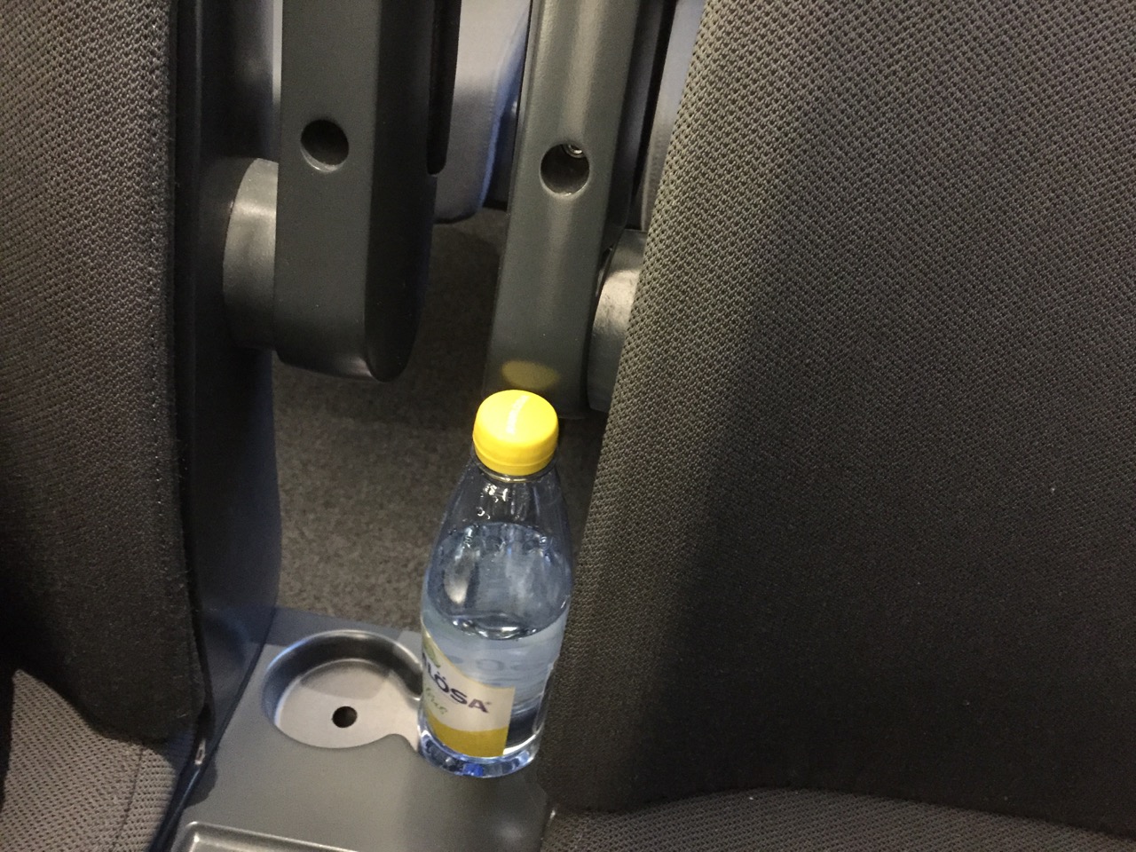 Gick ej att fälla armstödet med en 50 cl flaska, miss? Känns ju inte som att man tar med en burk läsk??