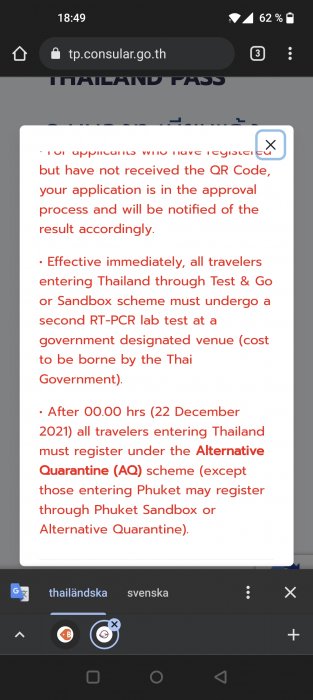 Vi bokade via Accor för att sedan kontakta hotellet via mail med bokningsreferens för test and go. Nemas problemas men fick betala i förskott både rum och tester.Bokade om min resa från Bangkok till Phuket med just anledning till detta. Flyger ARN-FRA-HKT i februari så den flygningen bör fortfarande kvalificera till Phuket Sandbox. Nu är nästa fråga hotellet. Måste det bokas via ASQ portalen eller räcker det med att man bokar direkt genom hotellets kanaler för att bokningen ska räknas som godkänd? Priset på hotellet i fråga är betydligt lägre om det bokas direkt via hotellets sida.