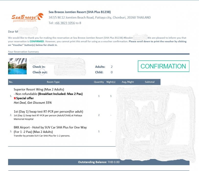 Dagen efter kom ett mail från hotellet att dom godkänt förfrågan från TH Pass.