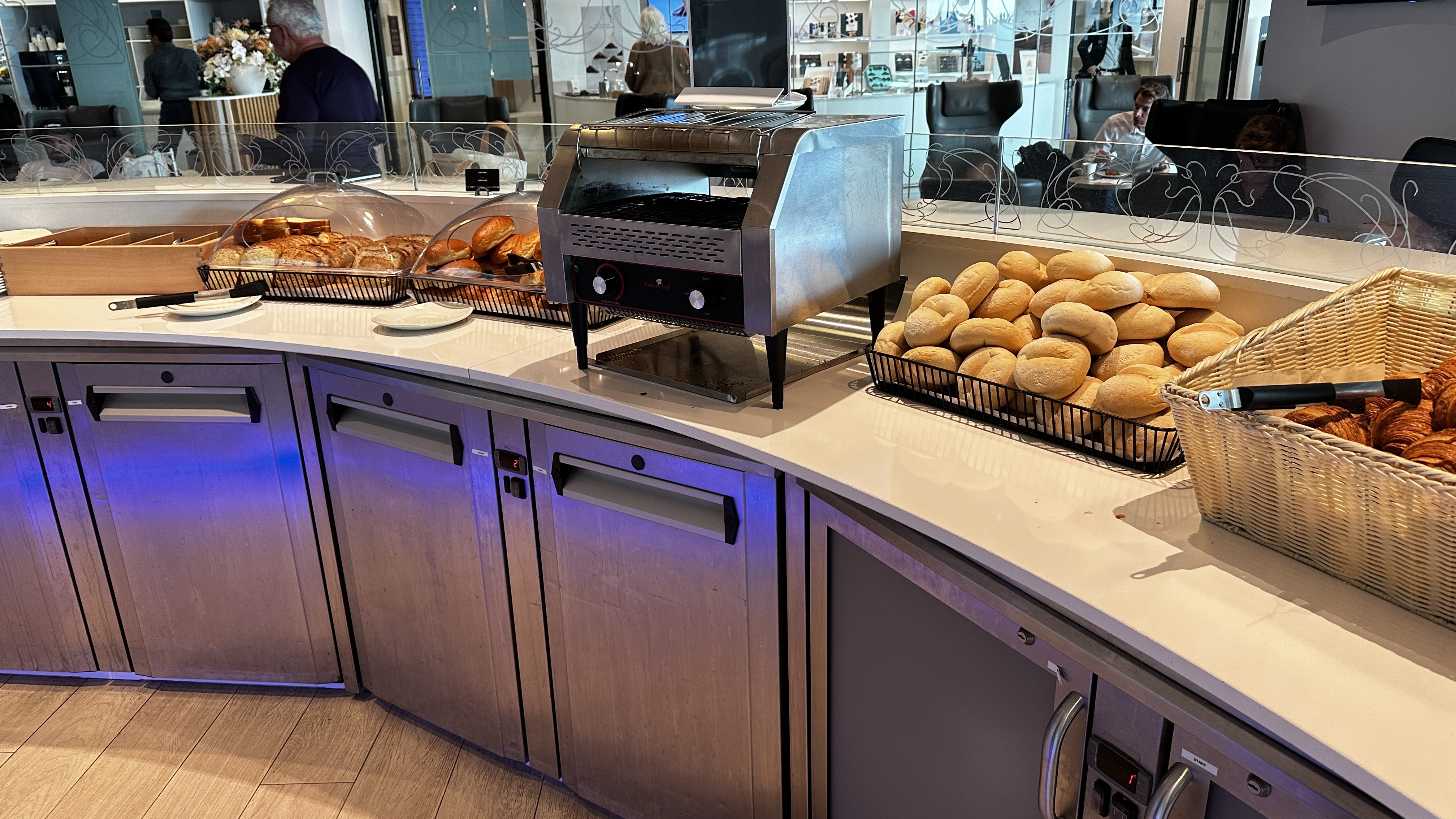 Jag har även testat Diamond lounge (PP och granne till loft), skulle säga att maten var bättre där men det kan ju också vara tillfälligheter, jag har oftast morgonflyg. Frukosten i Loft består av korvbröd ost och prickigkorv. Det fanns även äggröra som såg ut som en soppa med bitar av Jell-o. Loft är dock större och har bättre olika sittmöbler, bättre bar.