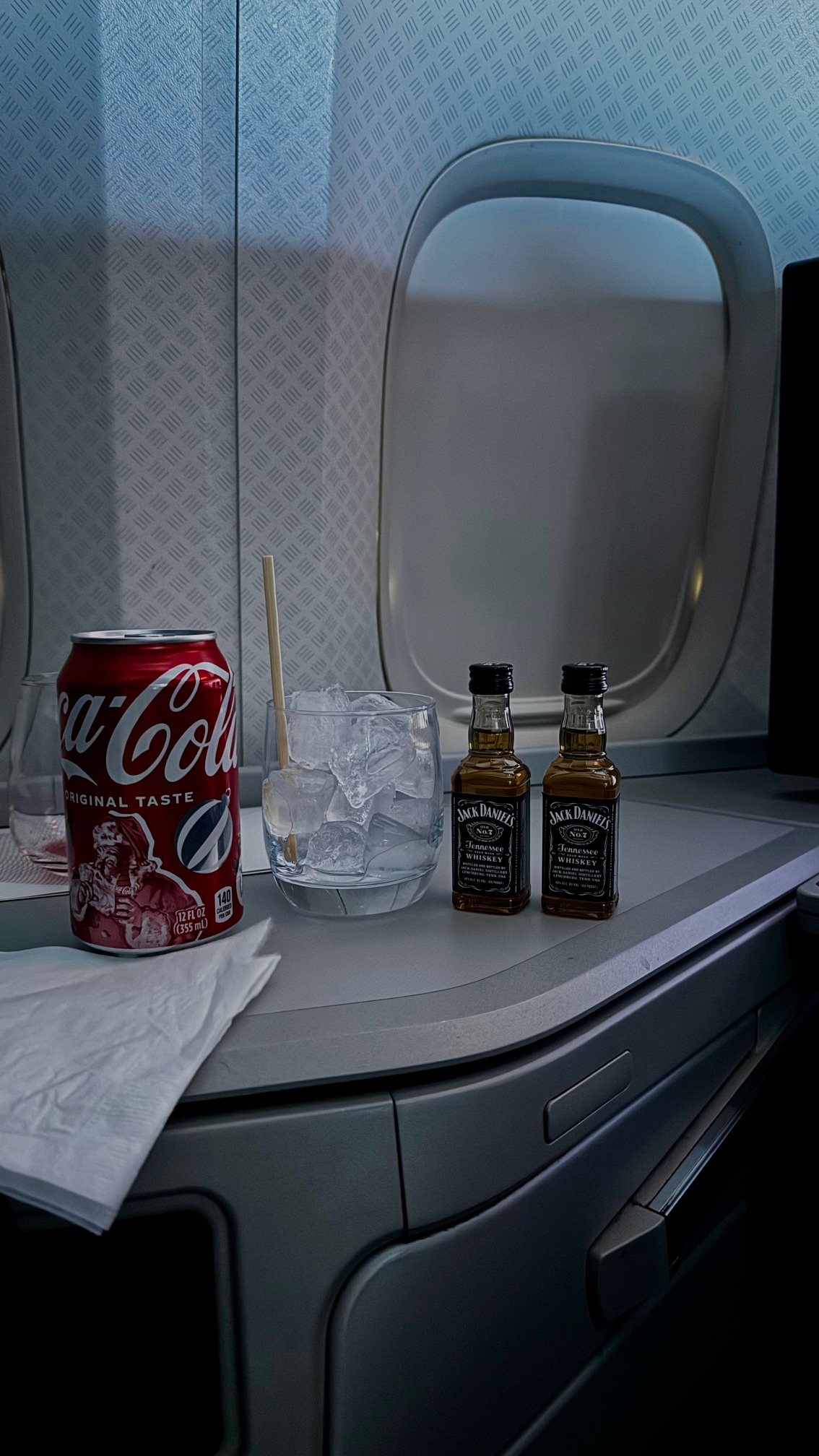 Välkomstdrink intogs i form av champagne. Stort minus att detta serverades i plastglas. Sätet var ungefär som jag hade förväntat mig. Är inget stort fan av herringbone-säten, men det duger mer än väl. Vid första anblick känns det som att det finns gott om förvaringsmöjligheter, men dessa är oftast små och man får inte plats med så mycket. Första intrycket var bra. Detta skulle sedan bli ännu bättre när jag sedan blev servad av den absolut trevligaste flygvärdinnan jag mött. Har i skrivande stund tyvärr glömt hennes namn. Det var tack vare henne att jag ändå var nöjd med flygningen. Fantastisk service, glad, skämtsam och trevlig. Maten hon, eller snarare AA, bjöd på var dessvärre katastrof.