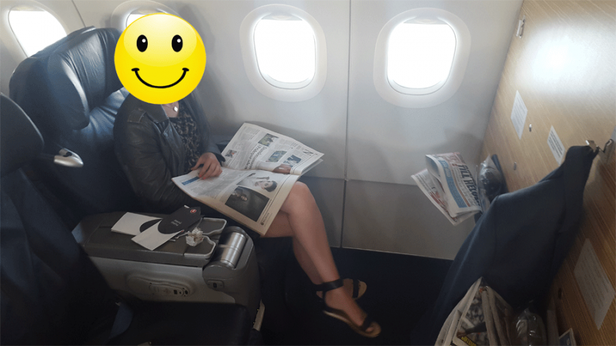 Planerad 0055, avgick 0121. Fina flat bed-säten i 2+2+2 config, riktigt bra mat. Flickvännen låg raklång, jag fick kura ihop mig lite när det var dags för sömn.
