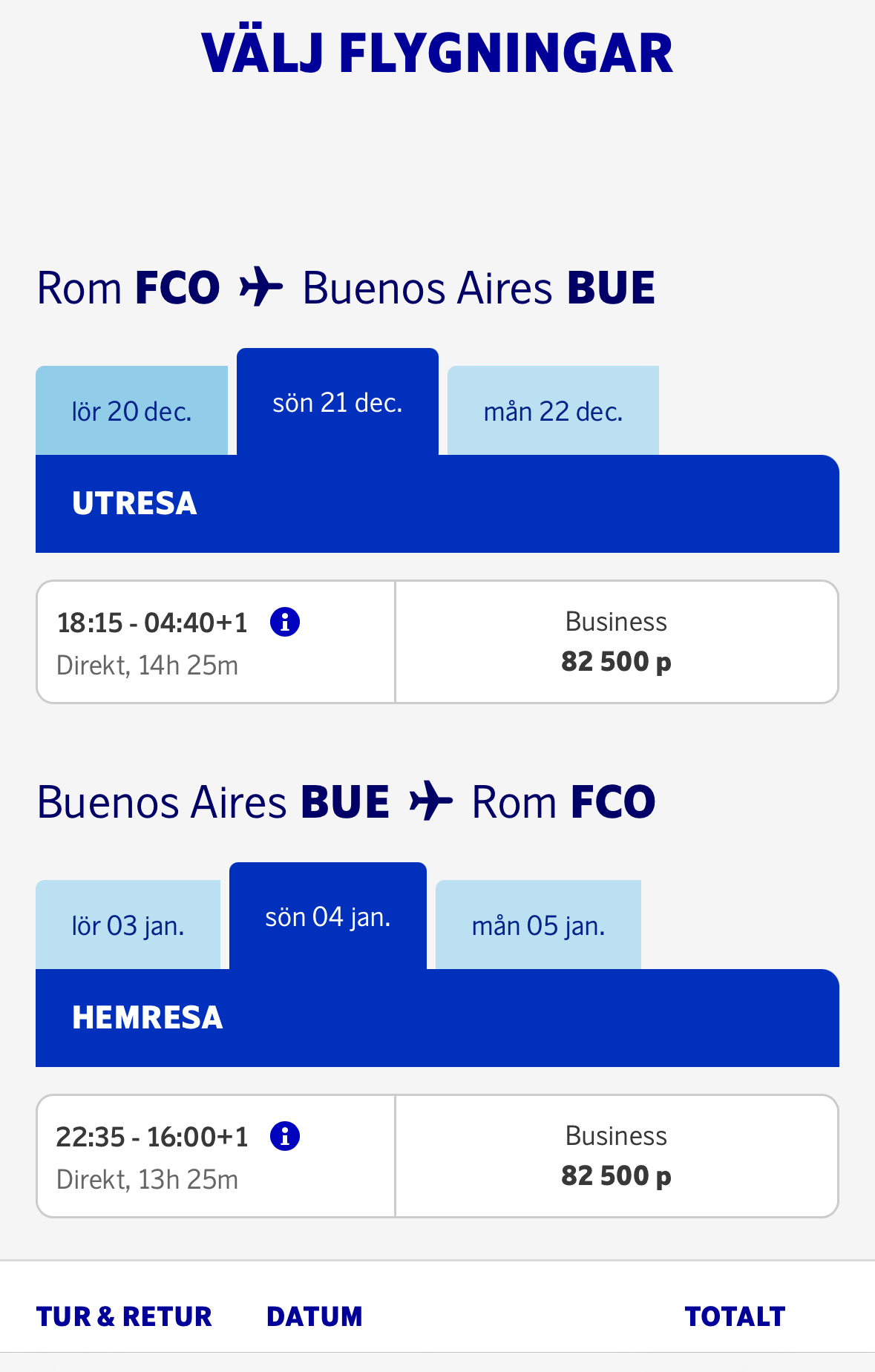 Tillgänglighet award flights med SAS efter 1 september 2024