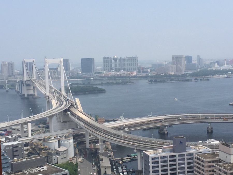 Efter lite vila på rummet så besökte vi hotellets gym som var bra och gratis. Gott kallt vatten fanns det också. På kvällen gjorde vi ett andra besök i Tokyo Tower för att få en vy i mörket. Regnsbågsbron var verkligen magnifik när den var upplyst. Man ser tydligt 360 graderssvängen som är en del av första racet i filmen Bilar 2.