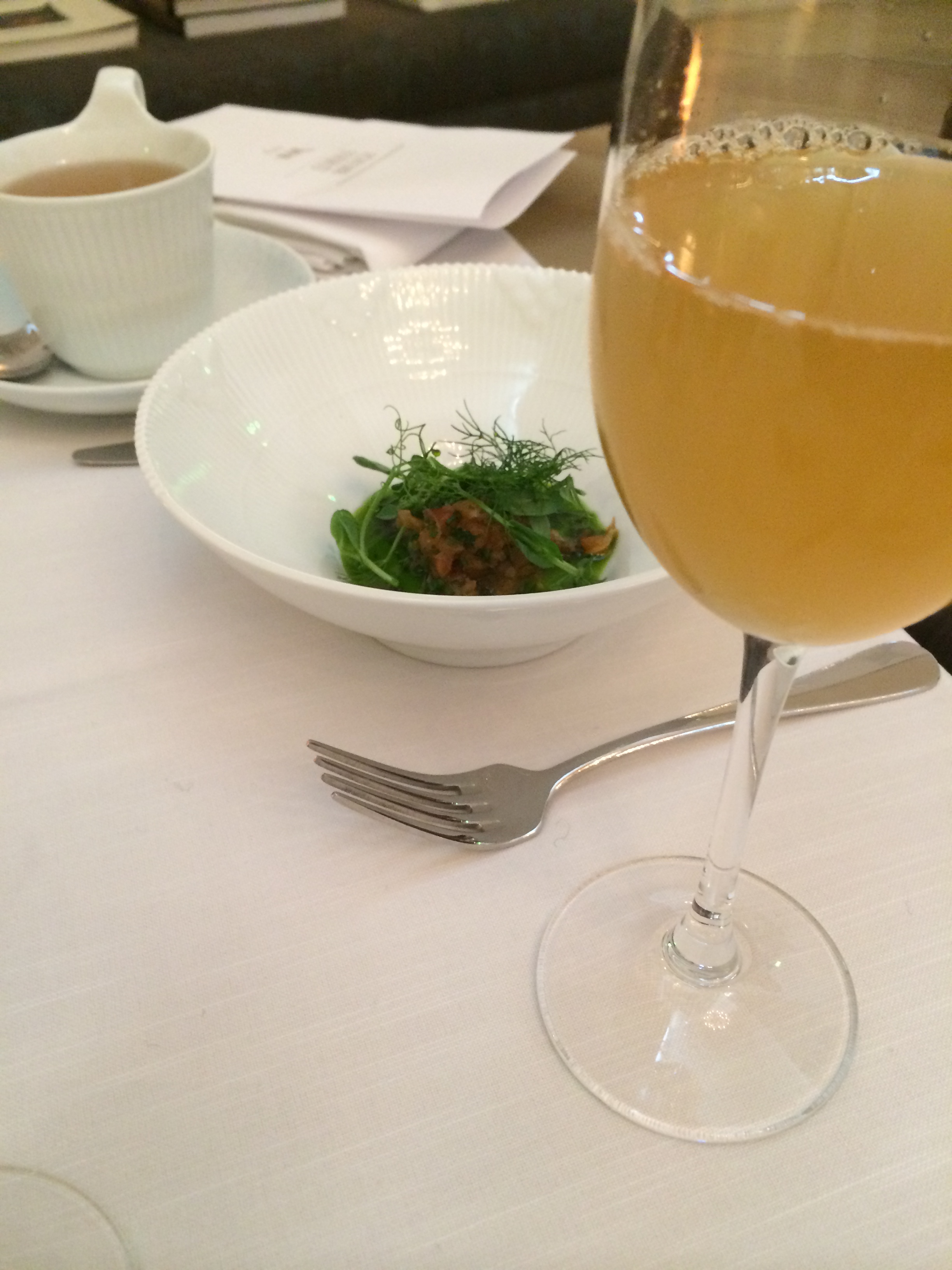 Som sagt så var nästan samtliga rätter (inte felaktigt kryddade) salta (rimmad torsk med flingsalt, charkuterier, pommes med massa flingsalt, kött med flingsalt), vilket till slut resulterade i torra läppar och hals. Det saknades liksom något som bröt av det salta.