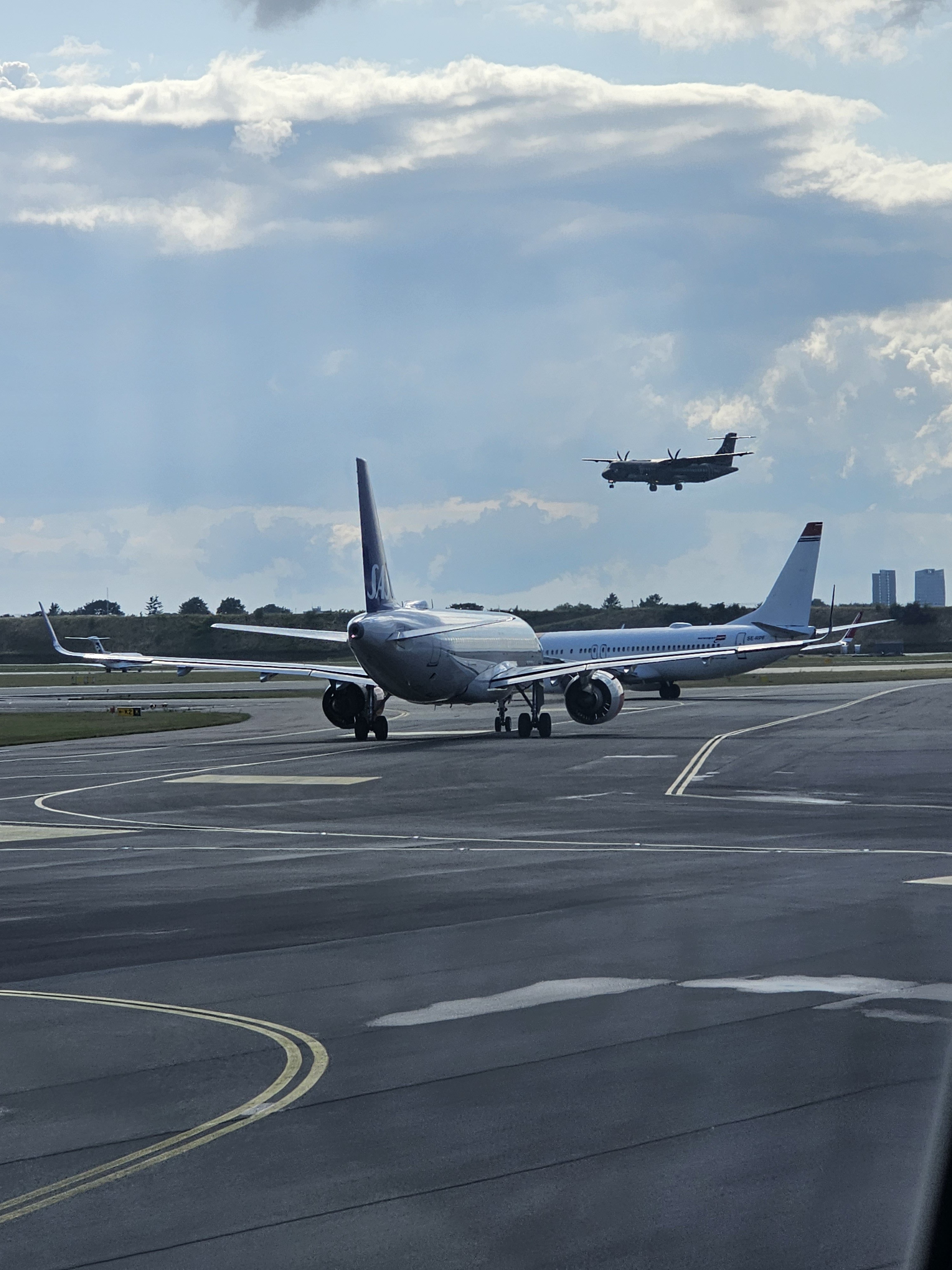 Endast bana 30 används för starter och landningar på CPH sedan några timmar tillbaka. Rejäl kö för starter och landningar. Min avgång 15:30 försenades till 16:00 och trotts boarding completed vid 16:05 fick vi ny slot 35 min senare. Som sen blev förlängd ytterligare 30 min. Vi står i kö nu, och lär lyfta 2h sena enbart på grund av brist på plats verkar det som.