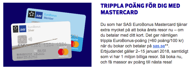 Trippla poäng på SAS Mastercard 2-15 jan på sas.se