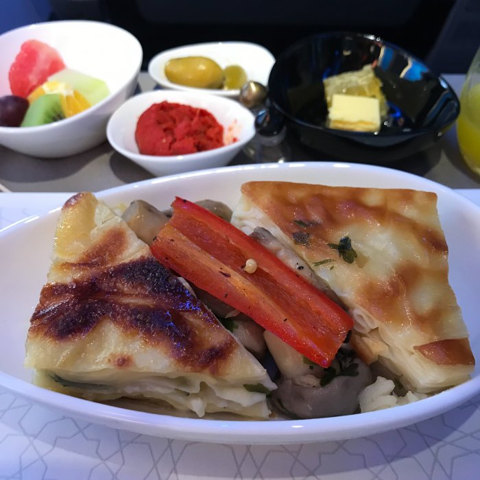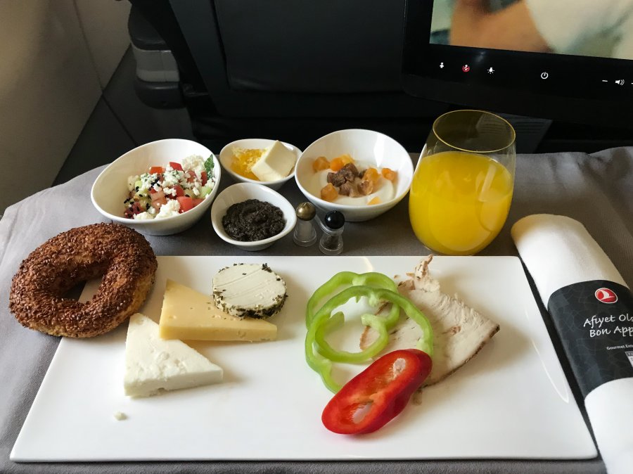Frukost på TK1793 från Istanbul till Arlanda. Börjar tröttna på deras frukostar nu. Fullsatt flygning i Business Class. Många svenska familjer påväg hem från semestern.