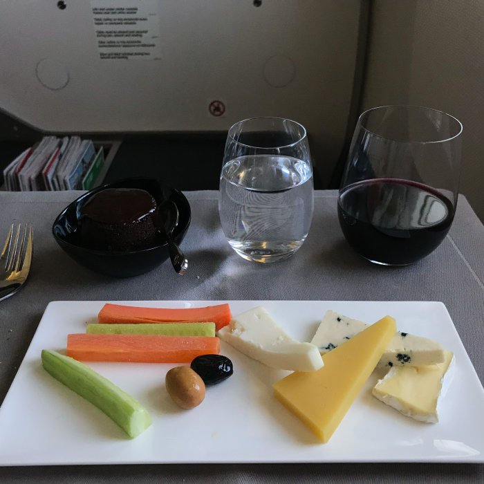 Ostarna var högst mediokra och knappast värdiga att serveras i Business Class. Chokladsufflén var däremot gudomligt god.