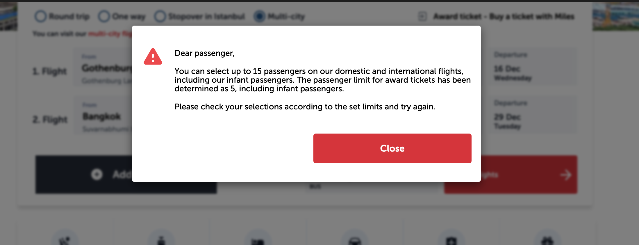 Jag ringde Turkish kundservice i Sverige, men hon sa att vi måste göra två separata bokningar. Min engelska är rätt dålig, så det är möjligt att jag missförstod henne. Jag har också fått tips om att gå via resebyrå, men här på forumet har jag flera gånger läst att man helst ska boka direkt med flygbolaget, så jag är lite kluven.