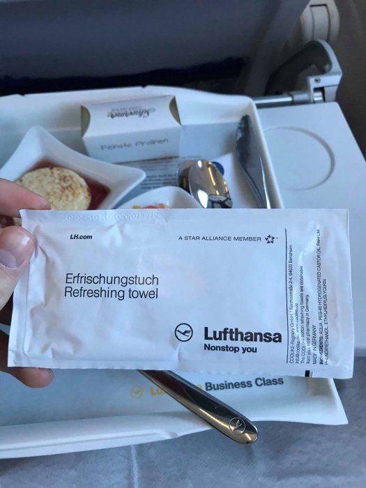 Intressant är att Lufthansa på sina våtservetter har reklam, som maskiningenjör gör det mig inte emot men det är väl något jag skulle förvänta mig av Ryanair.