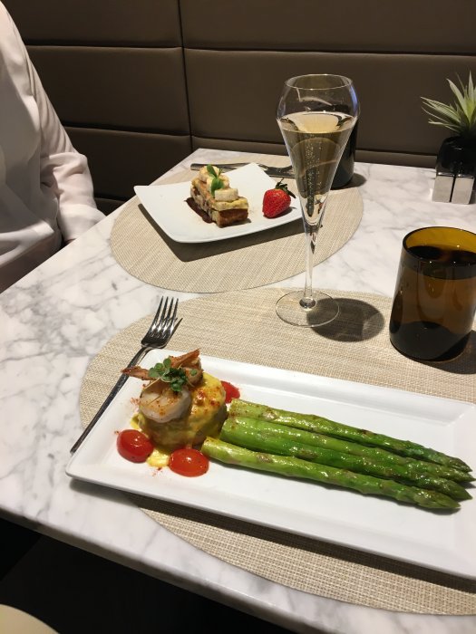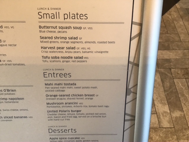 Nu i loungen som är helt folktom. Kanske beror på snöstormen utanför och typ oändligt antal inställda plan från ORD just nu. 6 minuters extrem lugn promenad från Gold Track till loungen. Ingen kommentar alls varken i security eller loungen om att jag ska åka från T5. Nu bara till den stora frågan. Vad ska jag välja på menyn? Tänkte äta om några timmar så finns tid för input. Står mellan burgaren eller Mahi Mahi till varmrätt och Shrimp Sallad eller Tofusallad till förrätt. Ingen efterrätt denna gång. Vad tycker ni?