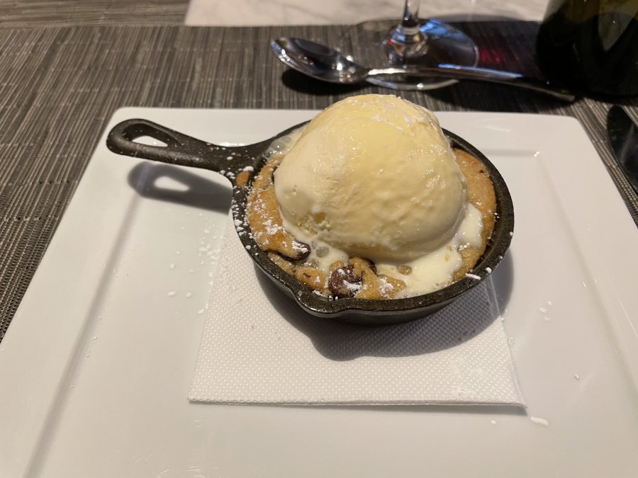 Ska sägas att desserten var mycket god (Warm chocolate chip skillet cookie)