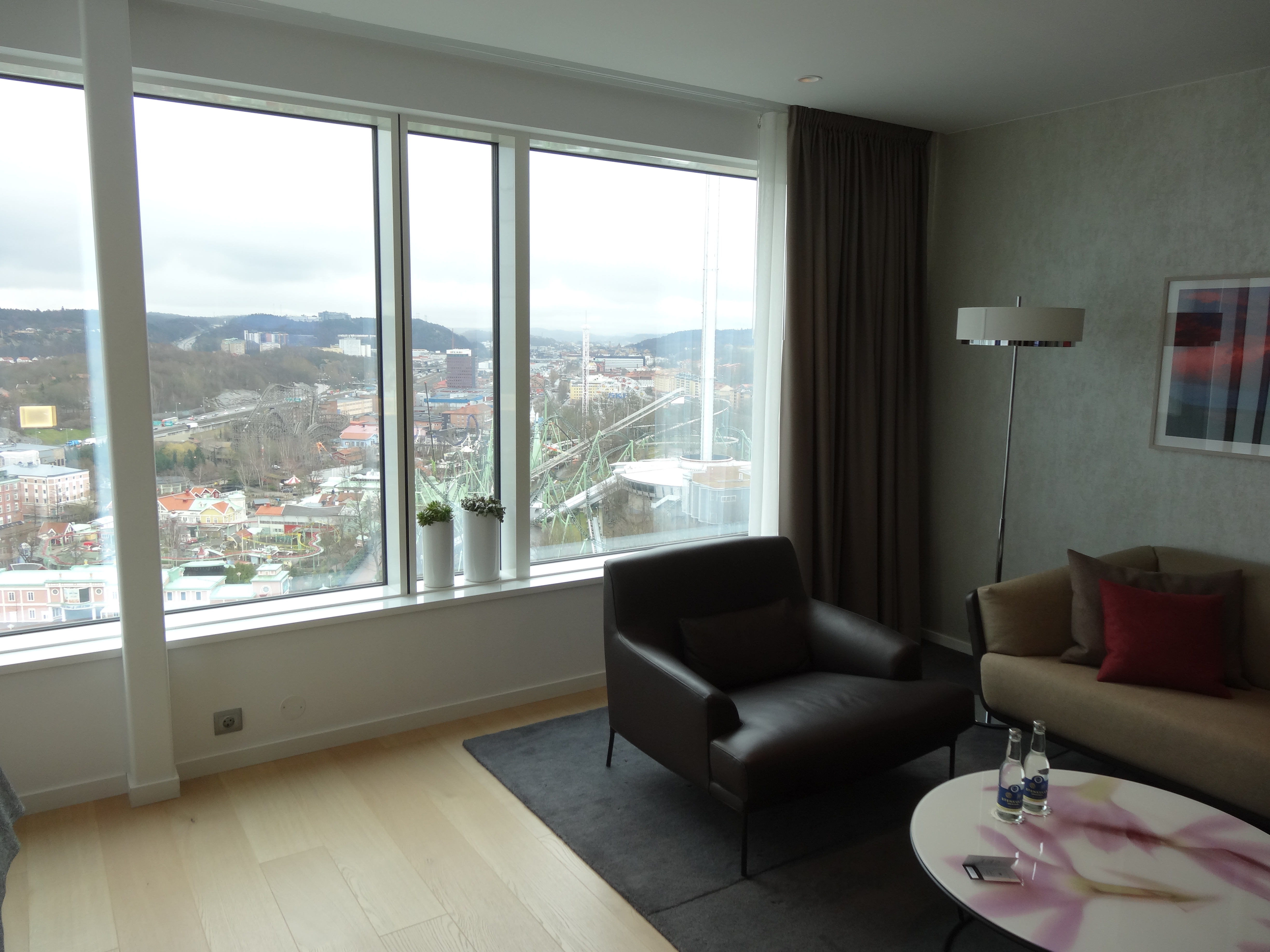 Efter nästan 4 timmar med fantastiskt god mat och viner, utsökt service och en underbar utsikt utöver centrala Göteborg, från dagsljus till upptänt för kvällen drog vi oss tillbaka till rummet för spendera kvällen där och njuta av morgondagens frukost.