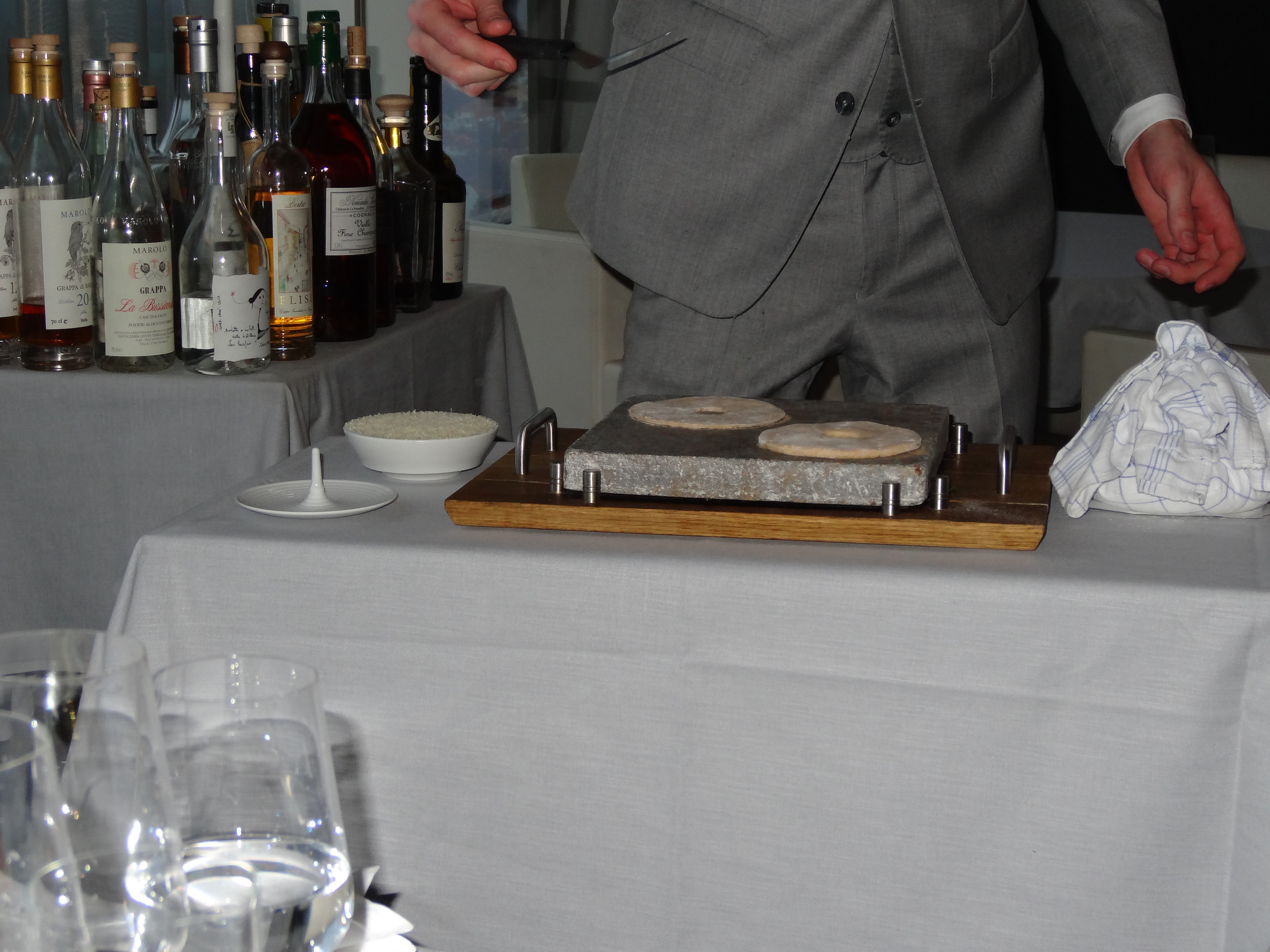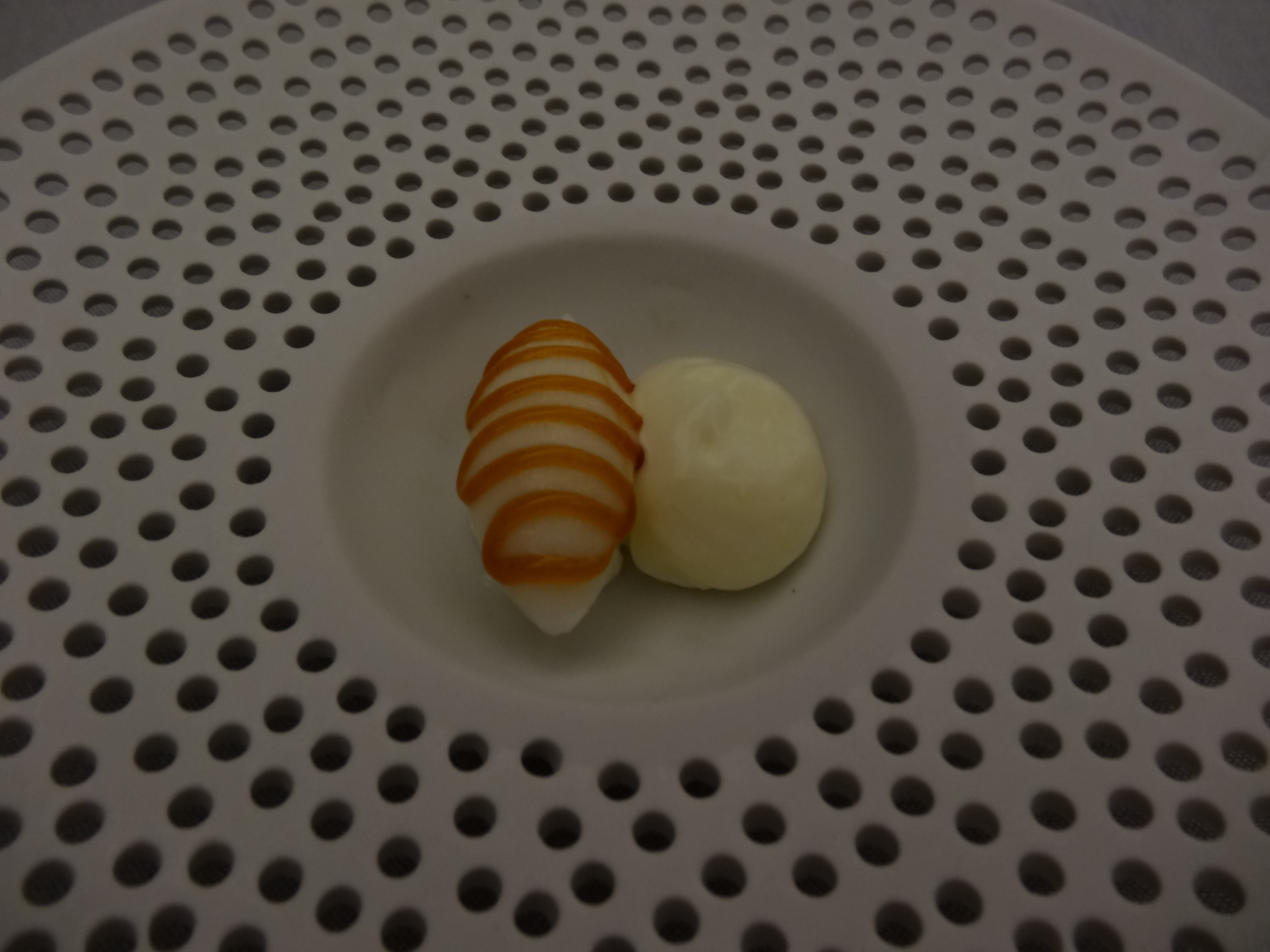 · Potatissorbet med chokladskum toppad med rostad potatis och potatis-crust.