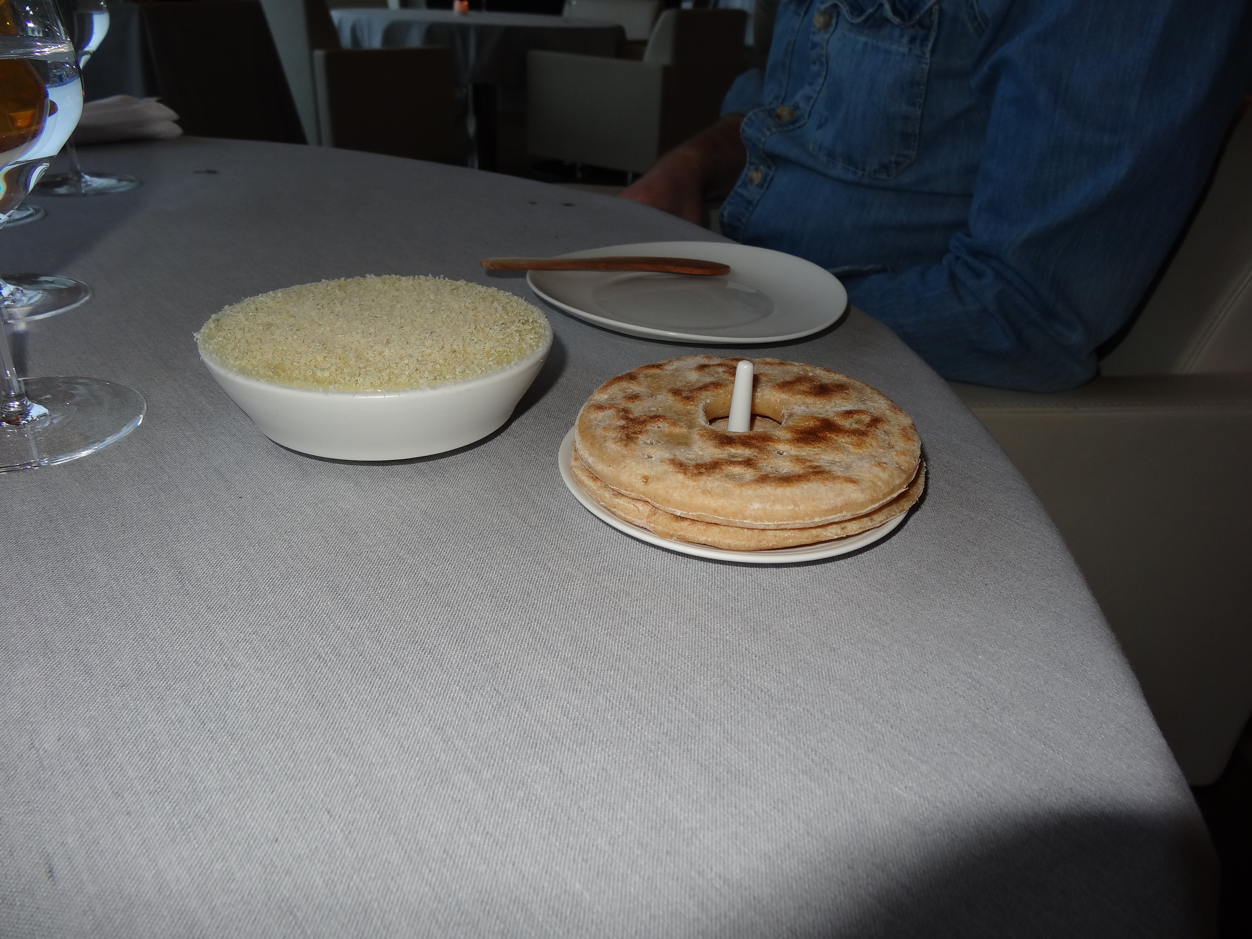 · Vid bordet bakat dinkelbröd med hemkärnat smör och torkad malen torsk.