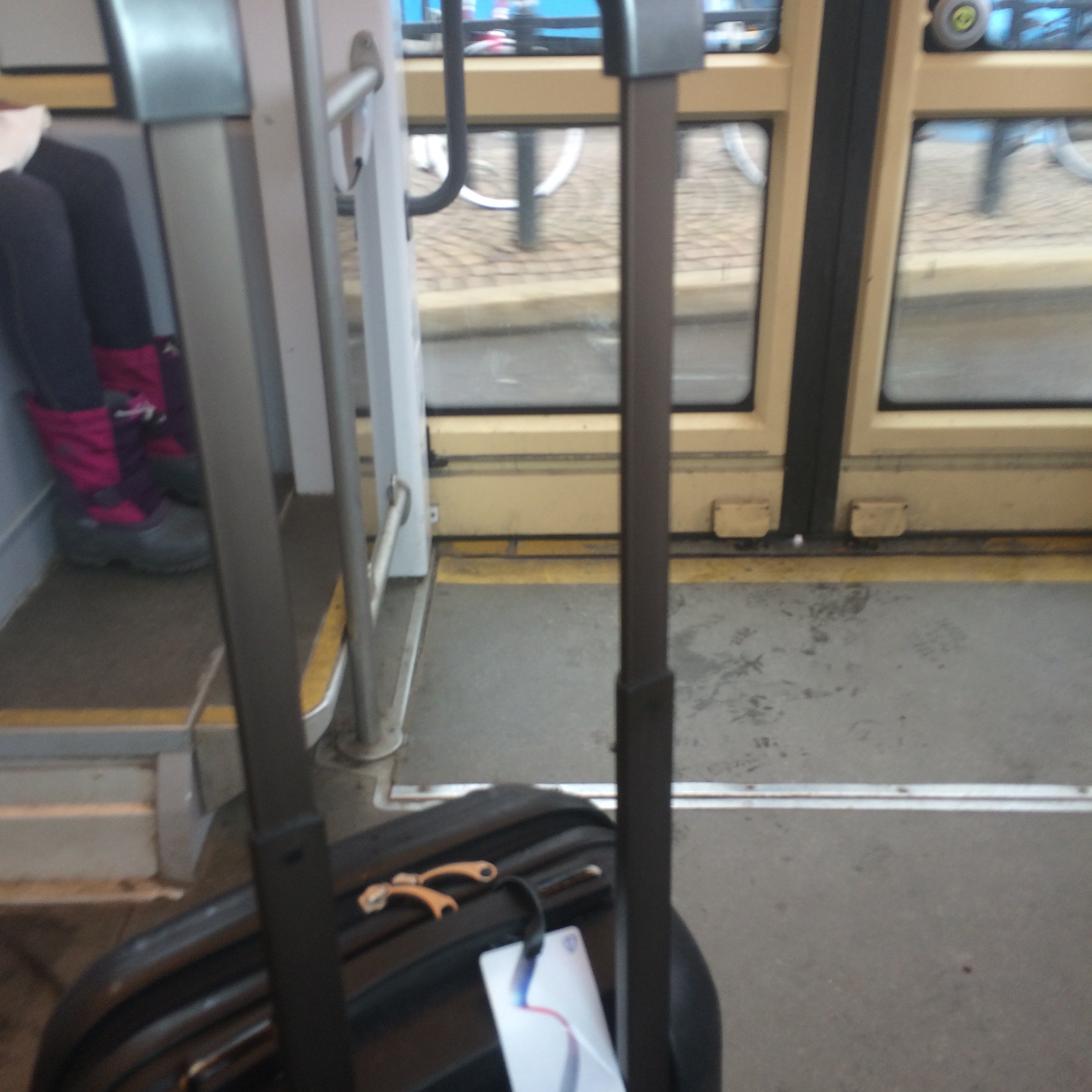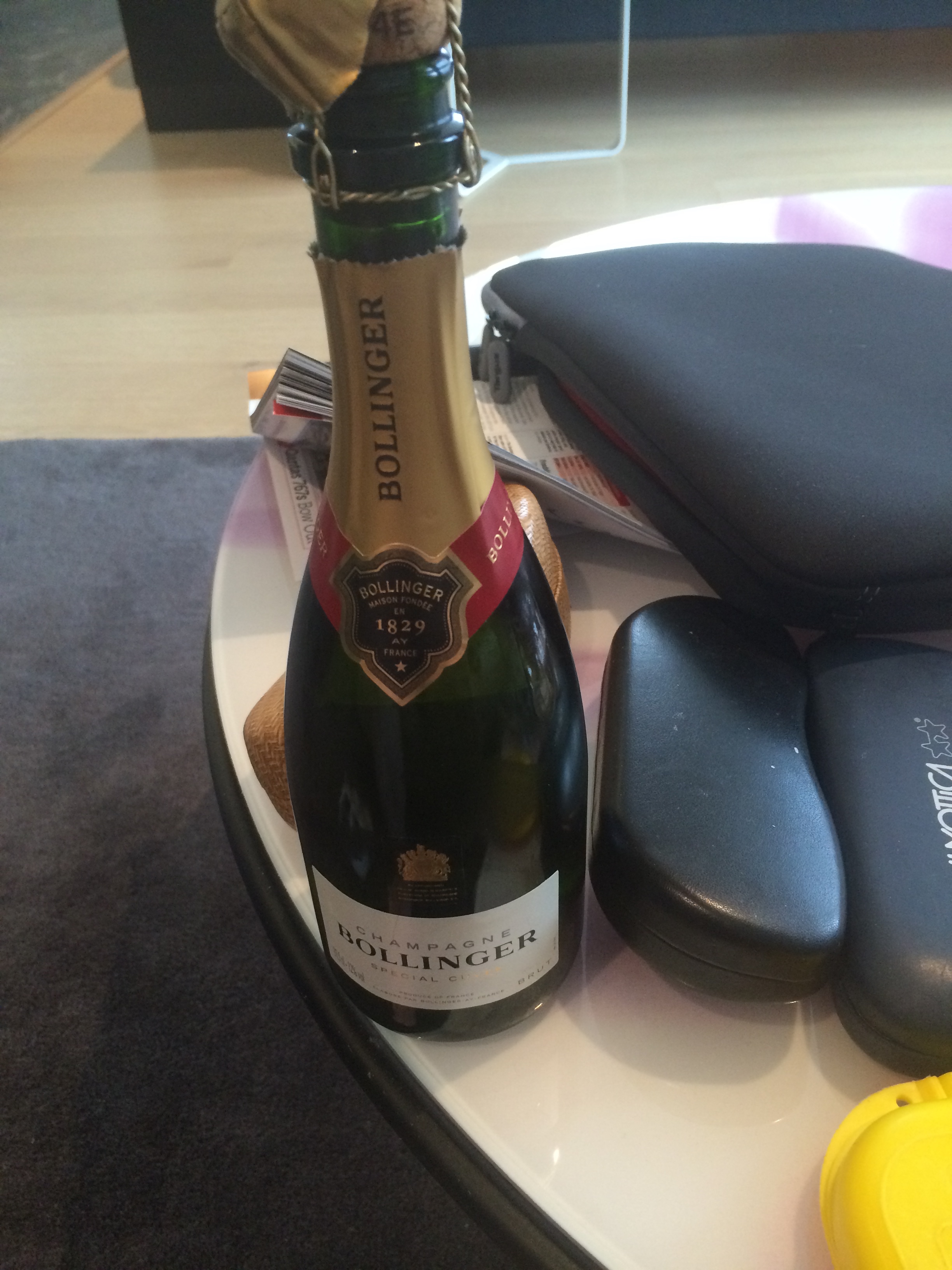 Eftersom det inte fanns någon lounge på vare sig tåget eller spårvagnen tog vi med oss skumpaflaskan själva