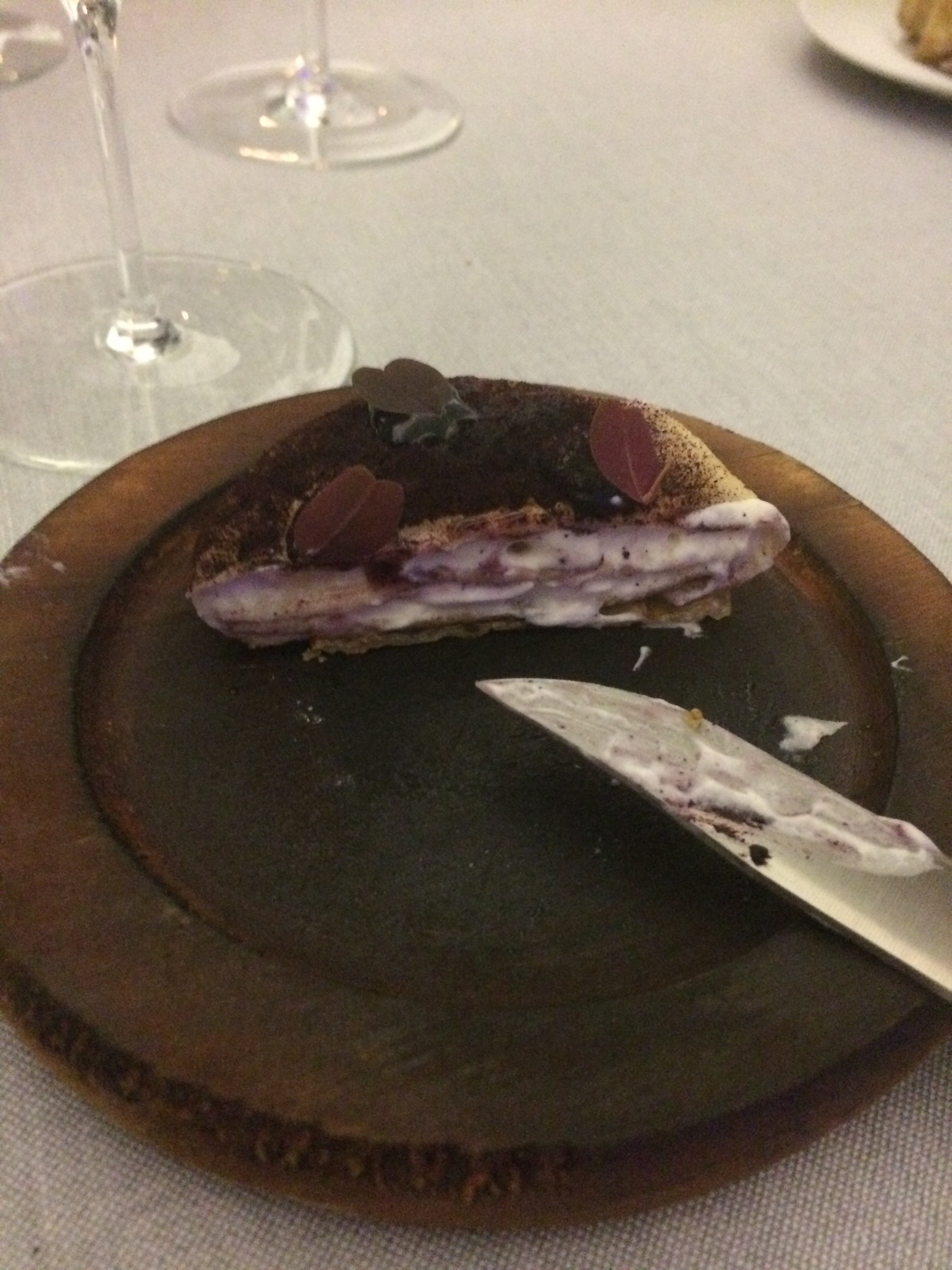 · Maräng med fermenterade blåbär, friterad glass och inbakad italiensk maräng.