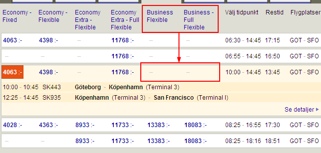 Jag försökte få uppgradering med poäng vid gaten istället och det gick.:)