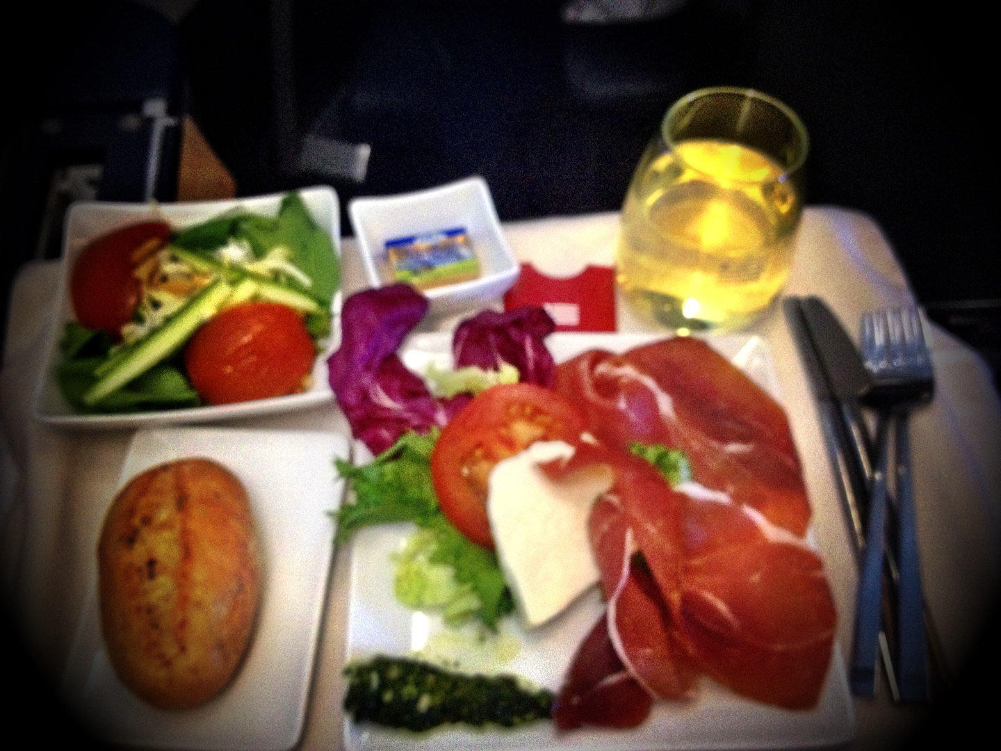 Första Businessclass.se chocken kommer direkt: ingen Champagne? Va! Ok, tänker jag, det är någon billig variant eftersom vi är på marken. Men nej hörni, det var Processco som gäller. Tack, i alla fall ingen Cava…