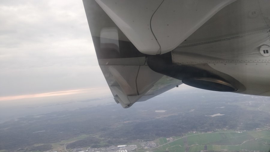 Åter igen låga moln vid inflygning, och landar i ett strilande regn.