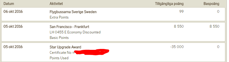 Tack! Då hänger jag med, jag trodde att baspoängen alltid var användbara (till annat än status) men det gäller alltså bara poäng från flygningar.