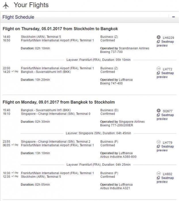 Benet ARN-FRA är med SAS code share på Lufthansa. Var tvungen att boka detta så för att få till priset och sen gjorde bokningen via resebyrå....