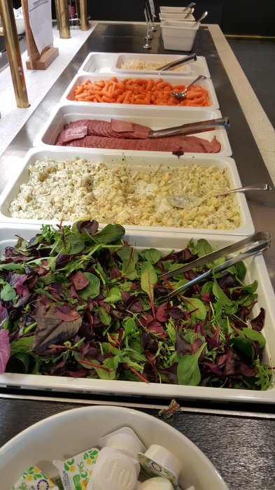 Skulle precis uppdatera med samma info. Mycket gott.Pulled pork, skagenröra och någon pastasallad på Arlanda SAS guld lounge.