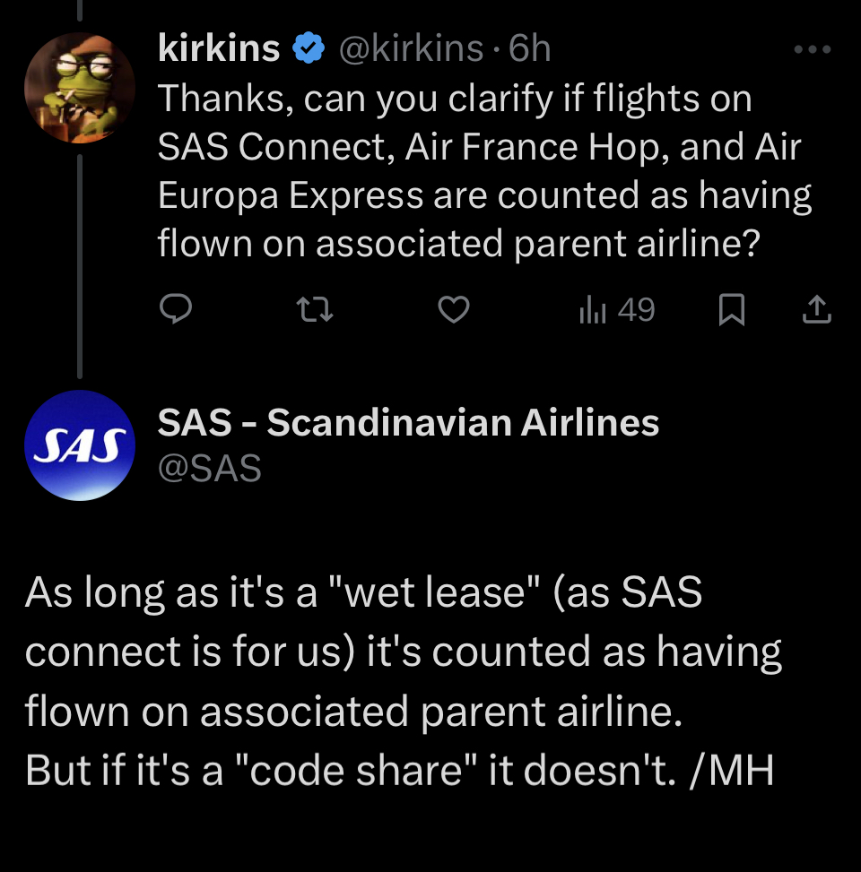Det lutar åt att SAS-medarbetaren som nekade poäng för Air Europa Express tabbade sig. Detta är från X idag angående en diskussion om utmaningen:
