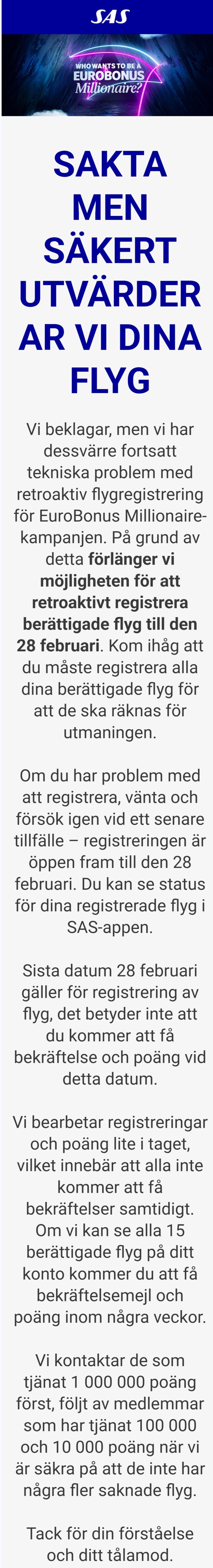 Grattis till samtliga,själv är man i fortsatt dialog om VN570 28 oktober som SAS fortsätter maila till VN om och inget postas.